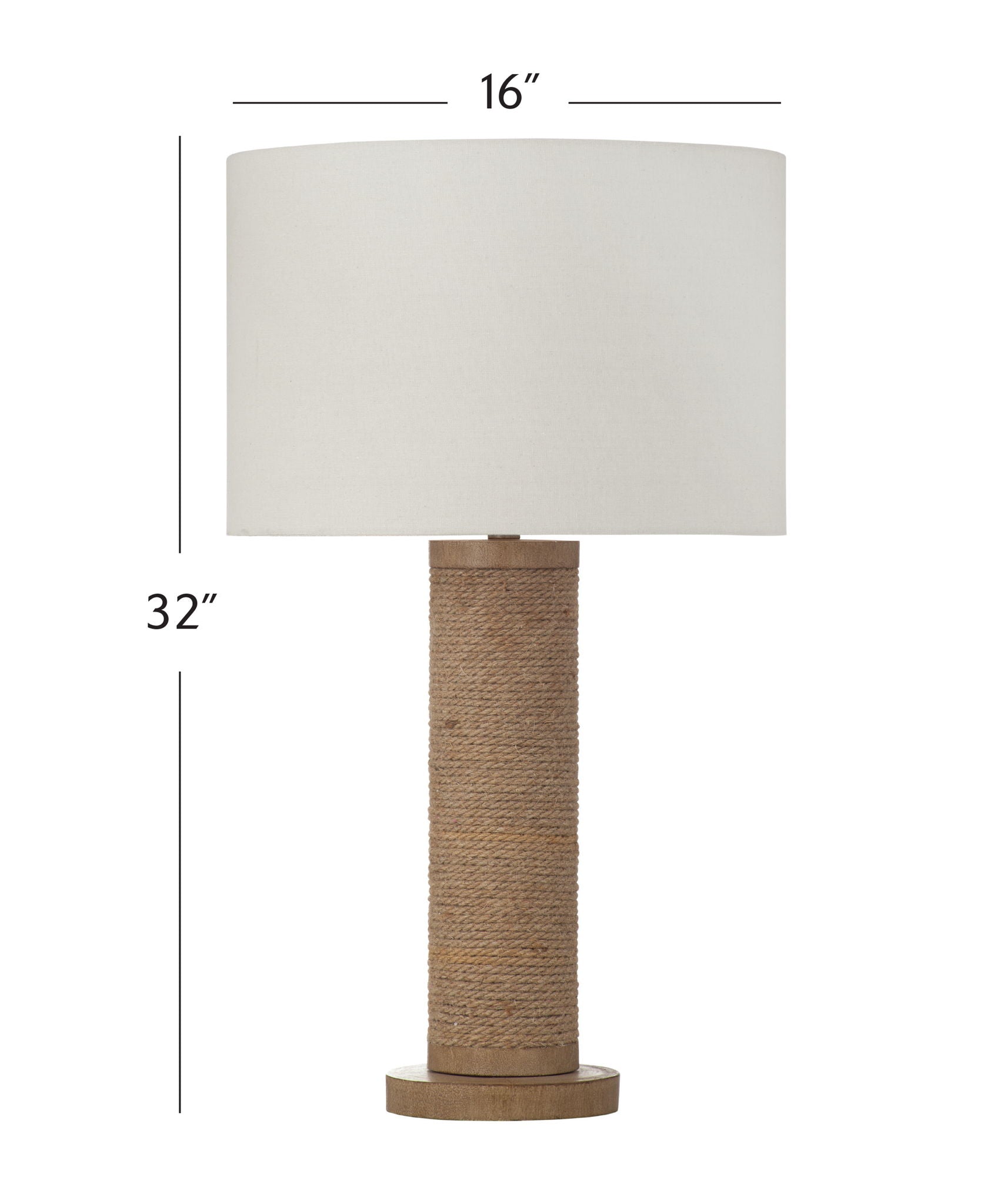 The Adams Table Lamp effortlessly merges boho design with coastal aesthetics, featuring charming rope detailing and a linen drum-style shade. Its modern yet inviting look adds a touch of warmth to any room. Ideal for bringing a relaxed, beachy feel to your living space, this lamp offers both style and functionality. With its understated elegance, the Adams lamp is a versatile addition to your home decor, providing soft, ambient lighting for cozy evenings or productive work sessions. Trustworthy and timeless, it enhances your interior with a touch of coastal charm and bohemian flair.