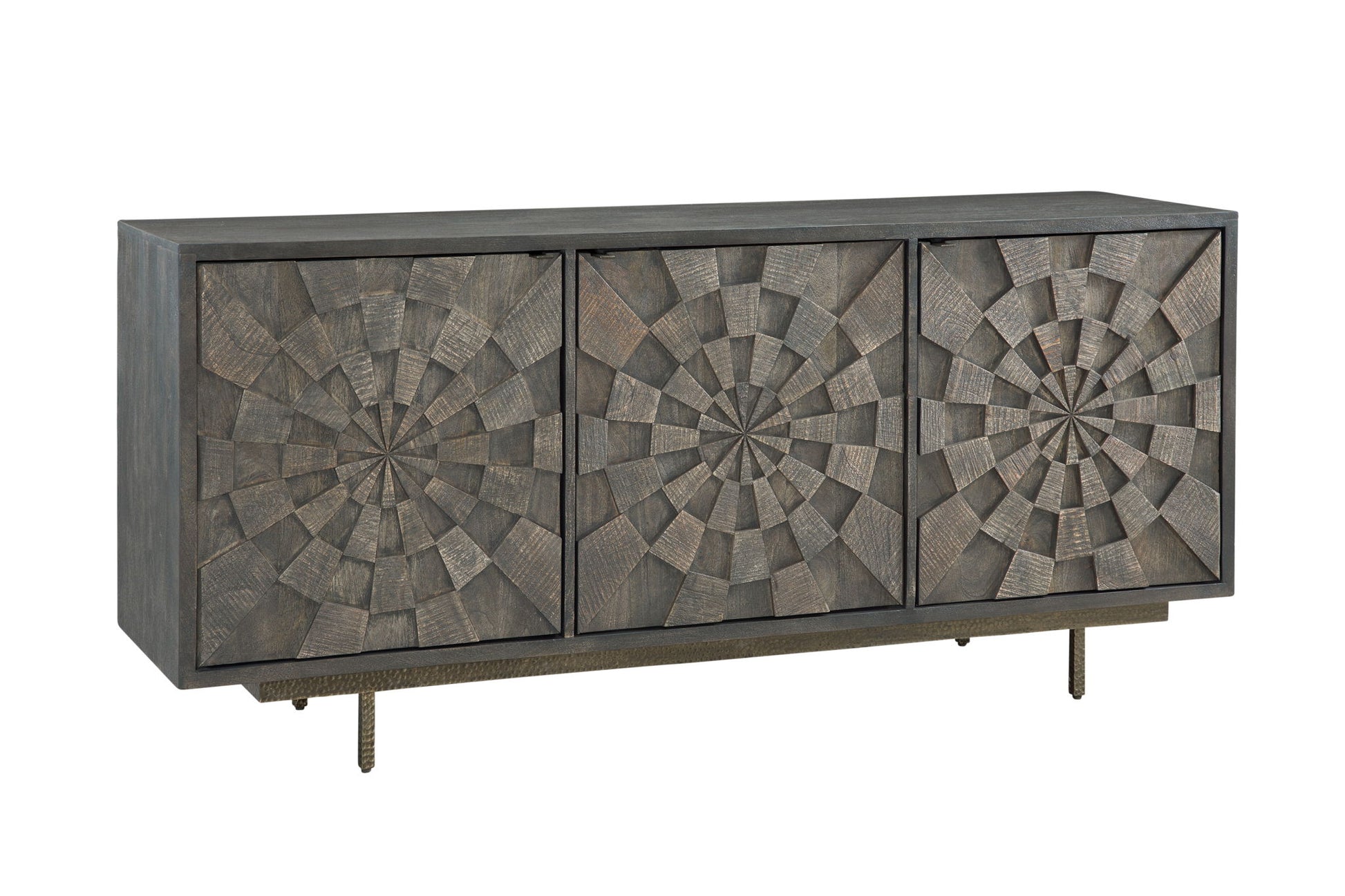 - Rustic Boho charm with a unique sunburst pattern on the three-door Bates Server