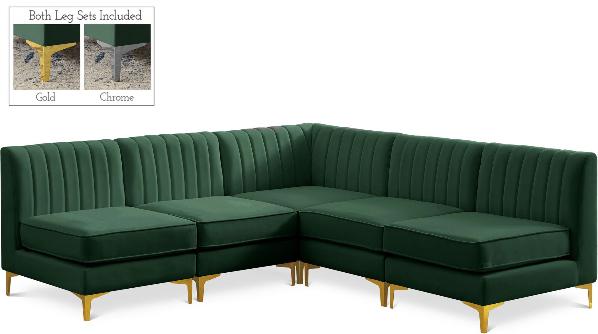 Alina - 5 Piece Modular Armless Sectional - Green