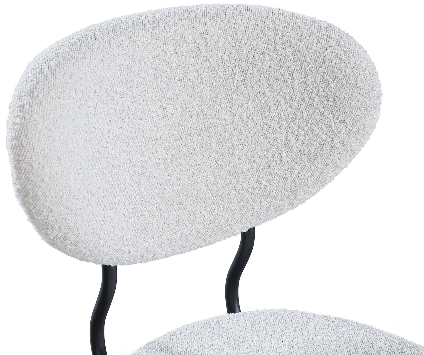 Eat your meals in style with this Allure dining chair. Featuring a matte metal frame and boucle fabric upholstery, this chair is as sturdy as it is comfortable. Its contemporary design adds flair to your kitchen or dining area, making it a unique discussion piece. Its rich color complements any dining table, making it a versatile piece that you can use for years to come. This chair's lightweight footprint makes it a breeze to move toward and away from your table.