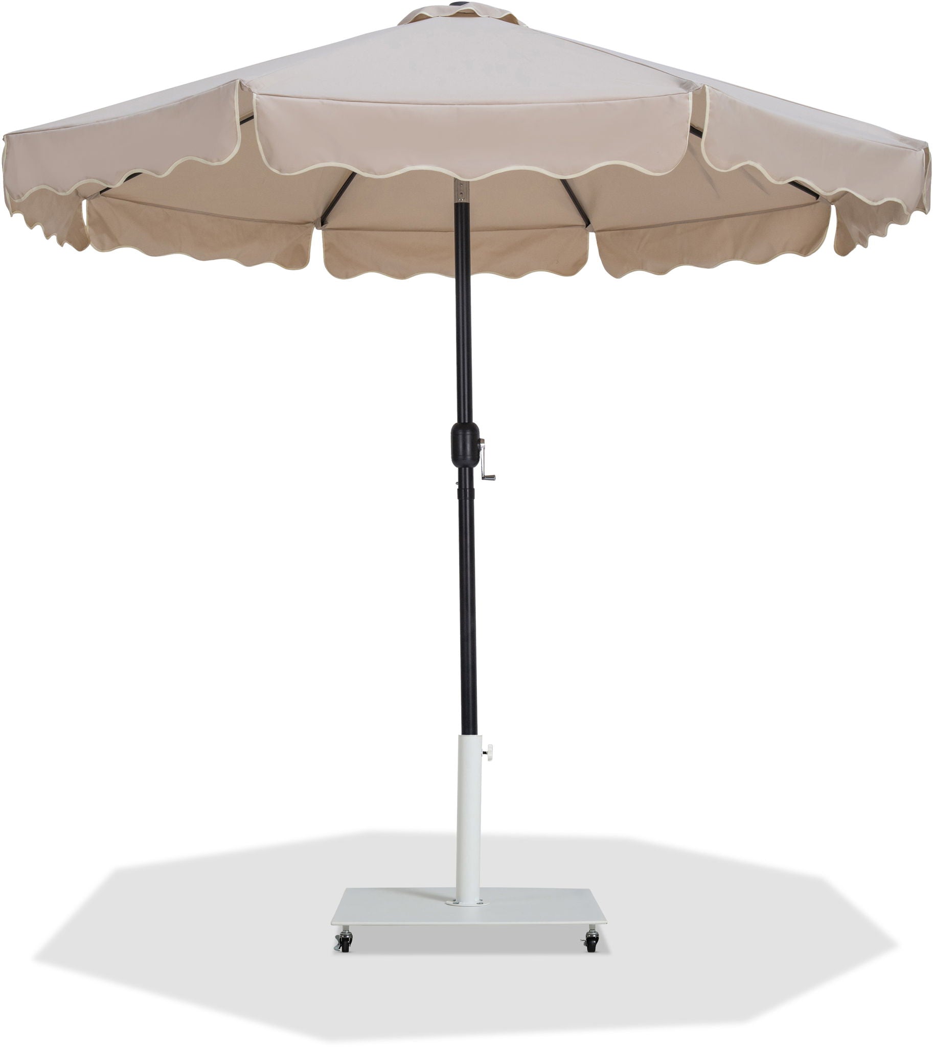 Amalfi - With Cream Piping Aluminum Patio Umbrella With Base - Beige / White