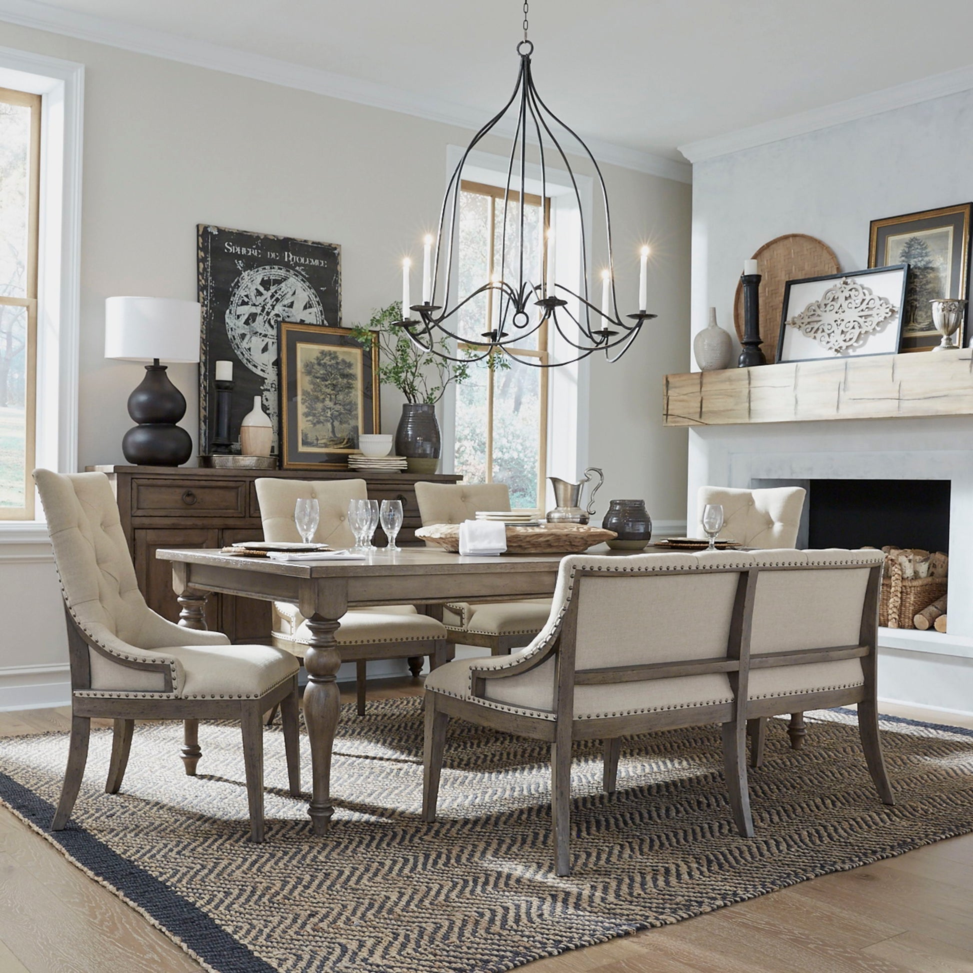 Americana Farmhouse - 6 Piece Leg Table Set - Light Brown