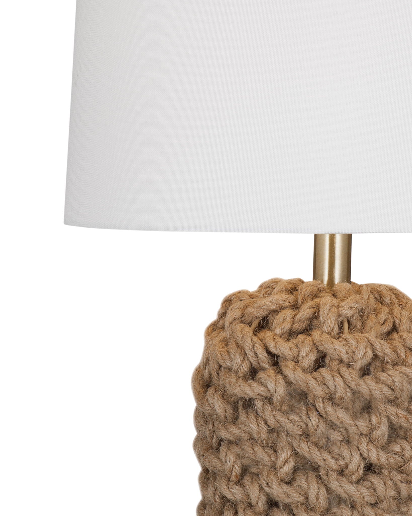 The Amur Table Lamp is crafted of rope with a white tapered shade.
