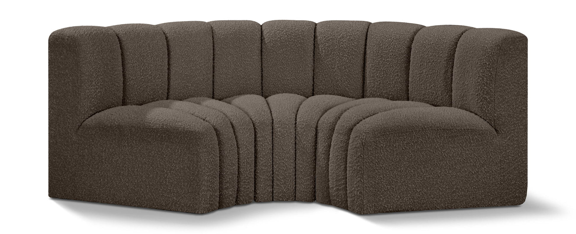 Arc - Boucle Fabric 3 Piece Modular U-Shaped Sofa - Brown