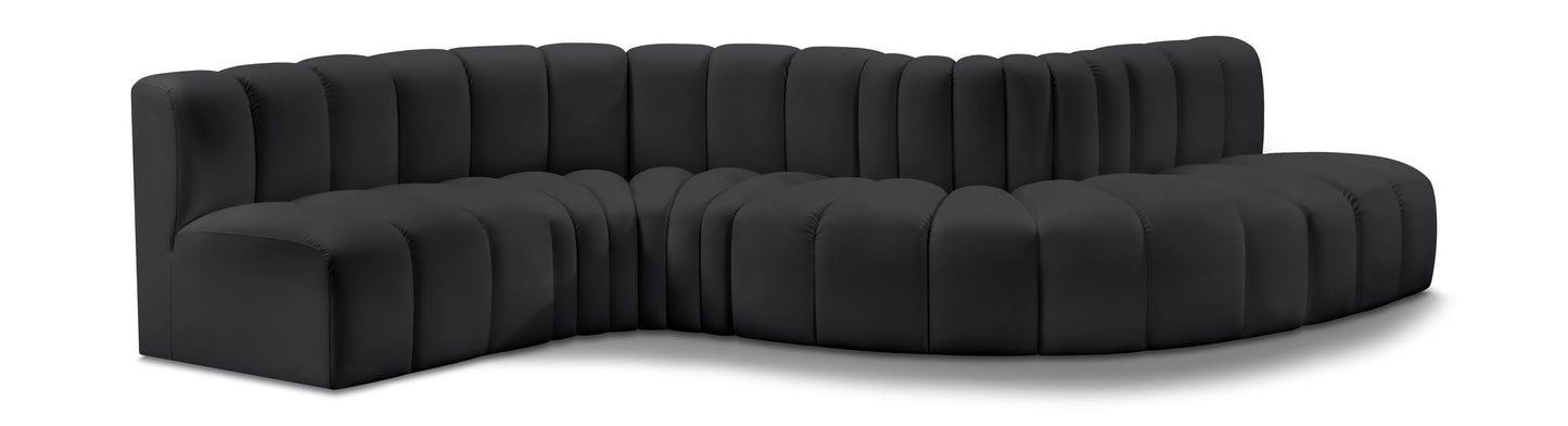 Arc - Faux Leather 6 Piece Curved Modular Sofa - Black
