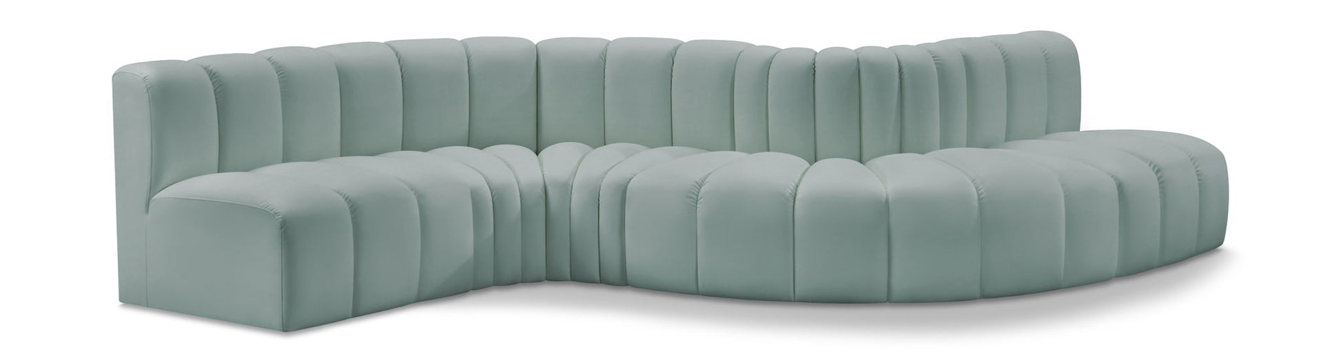 Arc - Faux Leather 6 Piece Curved Modular Sofa - Mint Green