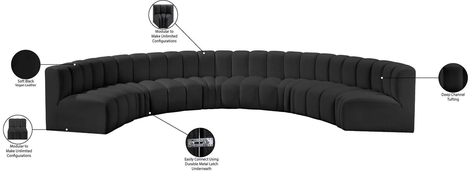 Arc - Faux Leather 8 Piece U-Shaped Modular Sofa - Black