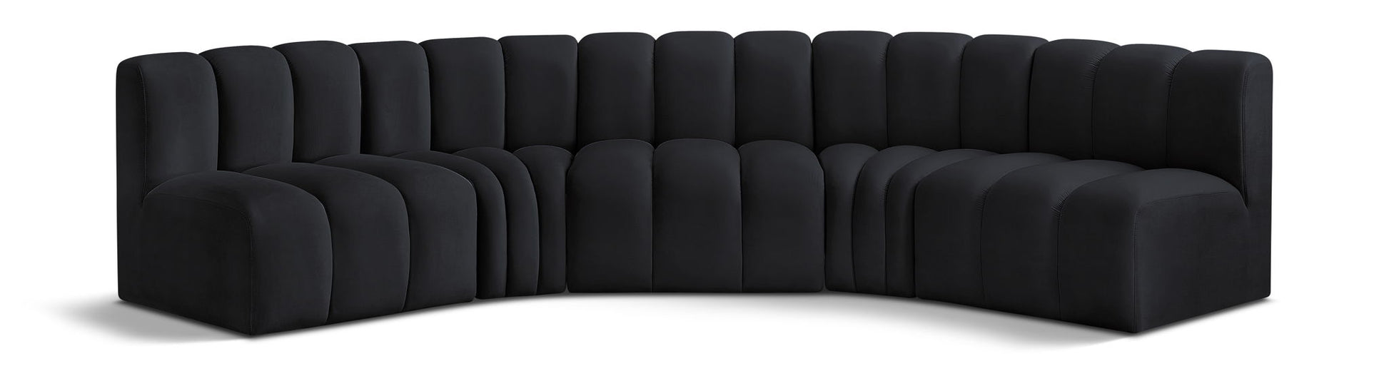 Arc - Velvet 5 Piece U-Shaped Modular Sofa - Black