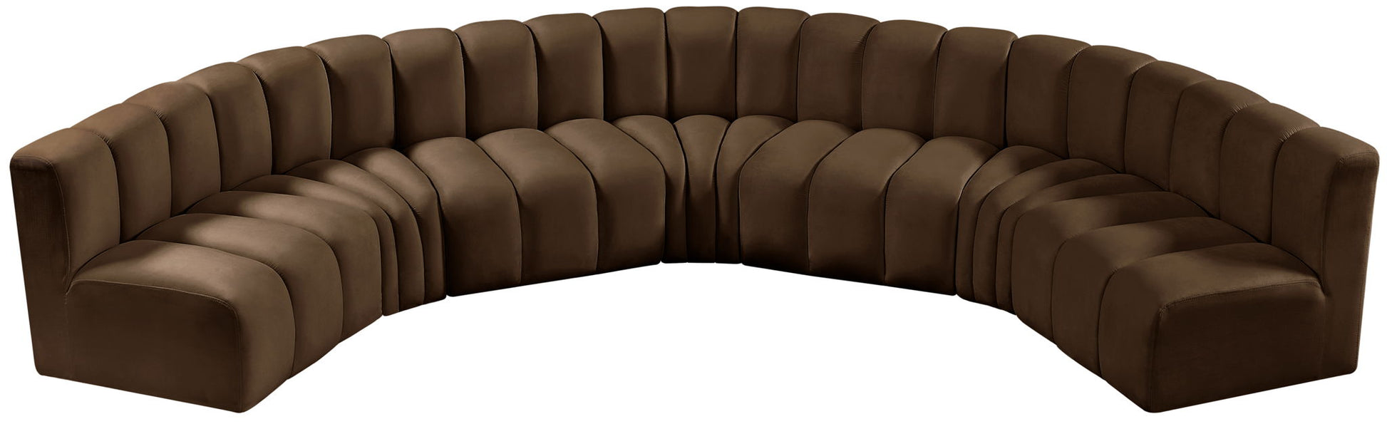 Arc - Velvet 7 Piece U-Shaped Modular Sofa - Brown