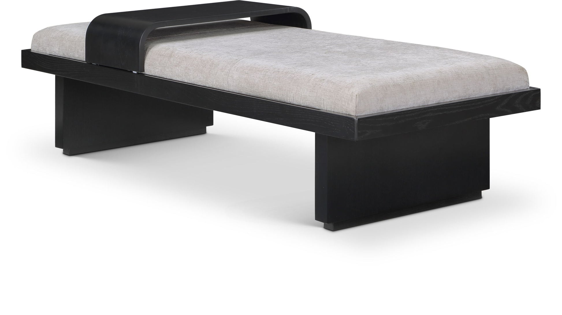 Bring home this versatile Arlington chenille fabric bench, a fusion of comfort and functionality and form meets function. Upholstered in soft chenille fabric that feels great against the skin and is easy to care for, this cozy, luxurious bench has a solid wood base with a rich black finish for sturdiness, durability, and timeless appeal. A moveable sliding wooden tray on this mid-century modern bench offers both convenience and versatility for your space.