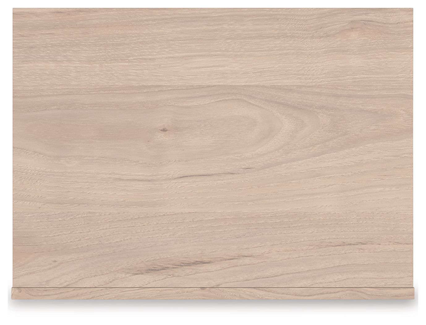 - Drawer interior is lined with a faux linen laminate for a clean, finished look