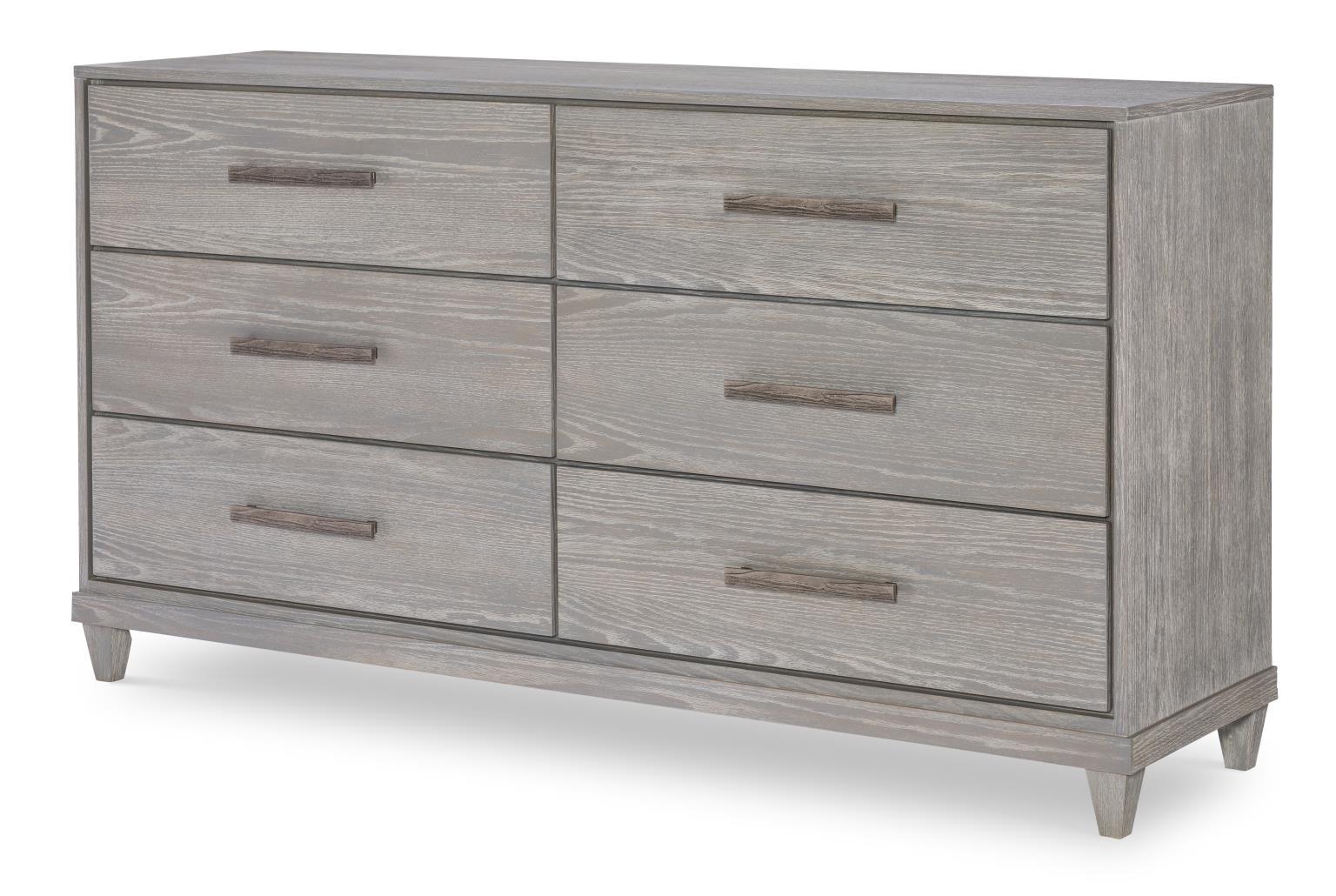 Modern forms combine with an aged,, organic finish that creates a relaxed and updated take on the coastal inspired Artesia collection. Clean lines,, soft shaping,, flat front drawer fronts,, and tapered legs all resonate with an elegant simplicity. The unique blending of elements allows Artesia to fit in numerous design themes and homes. The texturized Aged Sterling hardware gives a tactile element that balances perfectly with the rustic tone of the Smokey Taupe finish on Oak veneers.