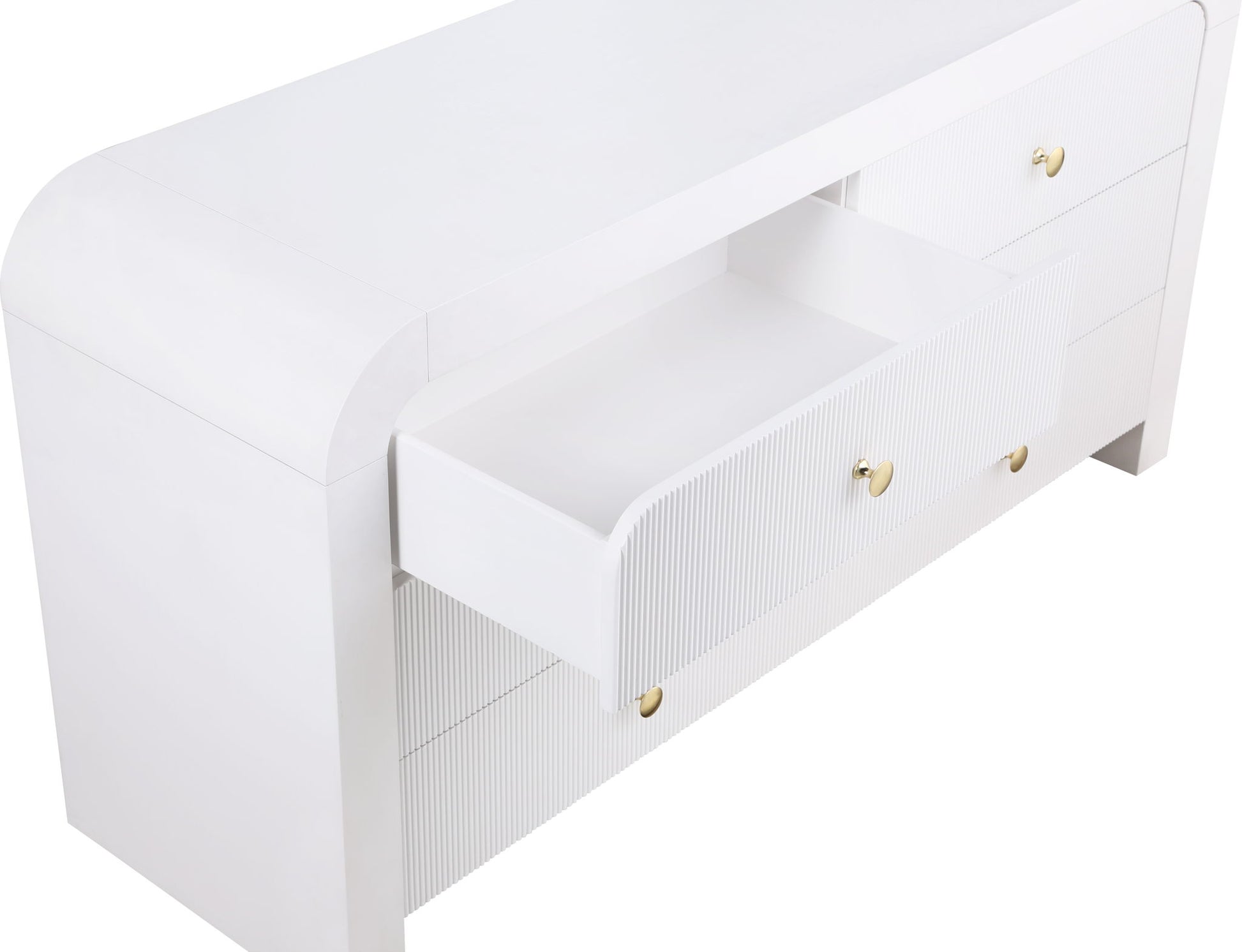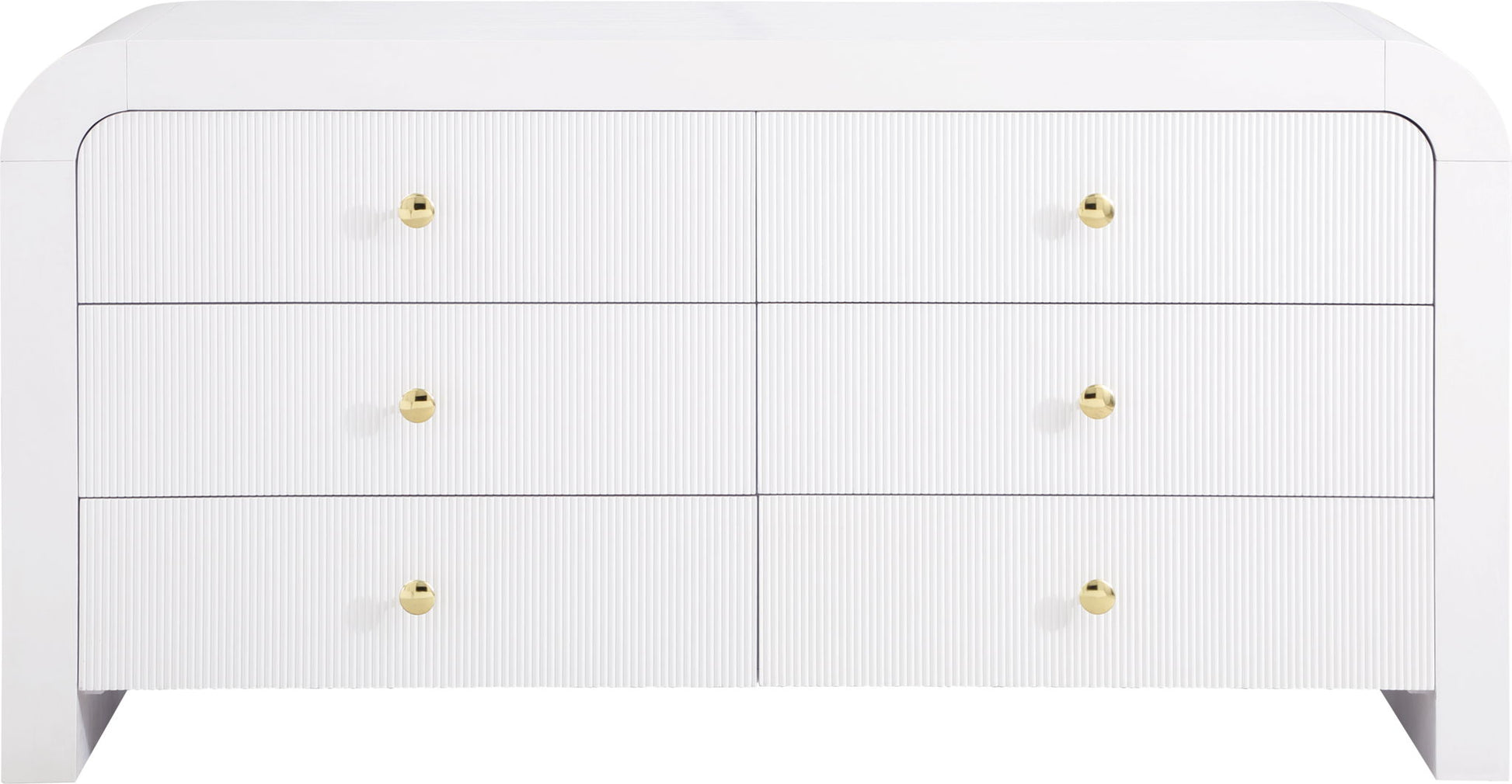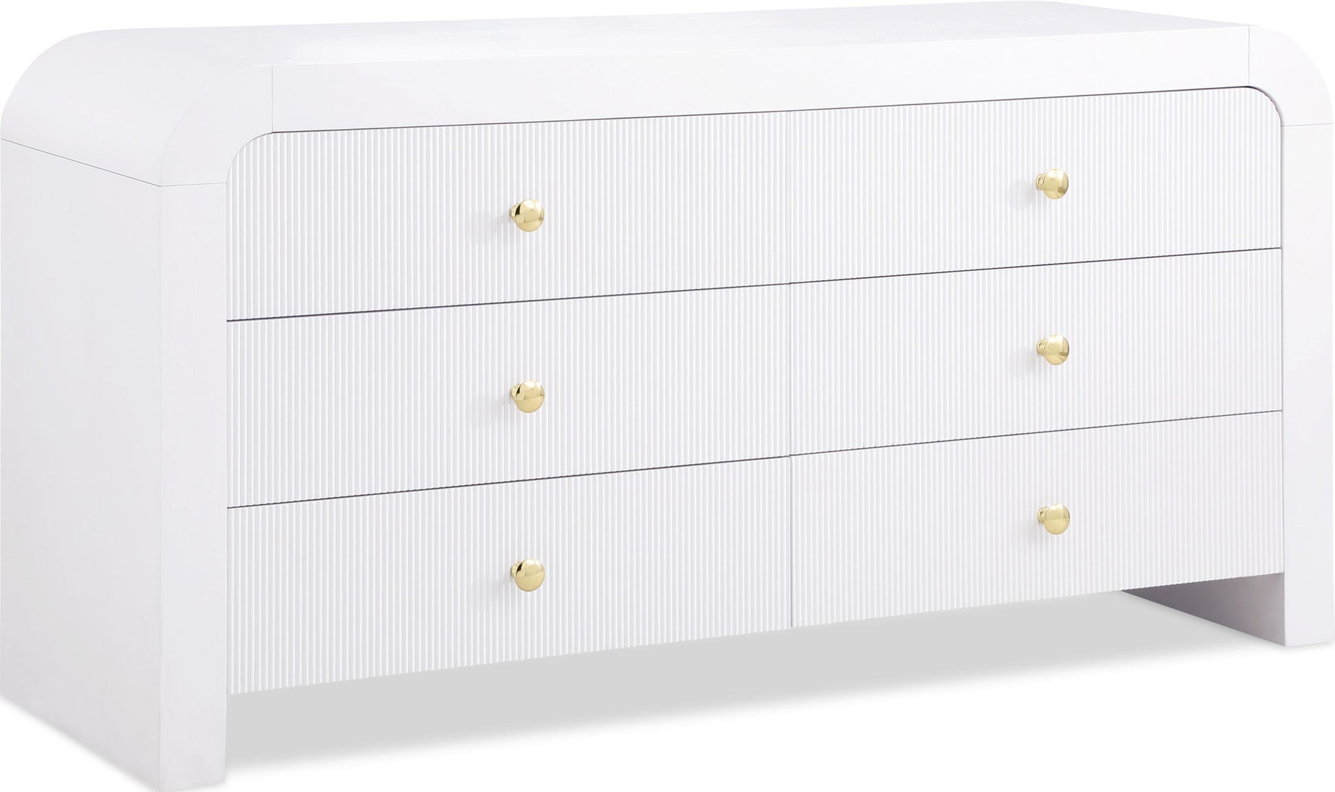 Make organizing a stylish affair when you bring home this Artisto dresser. This beautiful dresser features an elegantly eye-catching design with its rich wood veneer finish and its textured drawer front designs. Six drawers give you oodles of room for storing items out of sight and out of mind, and the roomy drawers make sure that organizational power is at your fingertips.