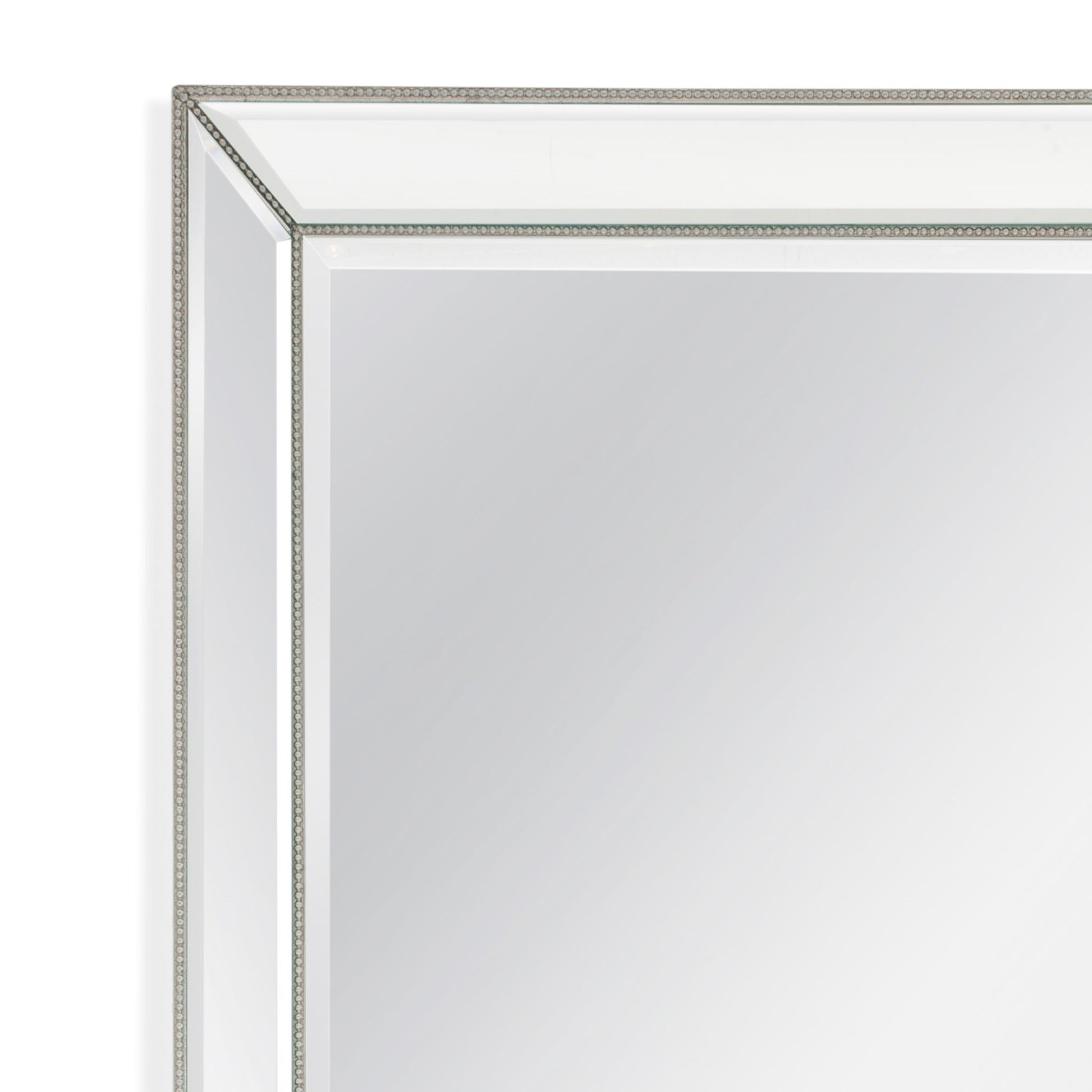 Elevate the elegance of your home with the Ashley Floor Mirror. Its glamorous design features a beveled glass rectangular frame adorned with intricate beaded detailing, exuding luxury in every angle. The stunning silver finish, complemented by white and silver color details, adds a touch of sophistication to any room. Crafted with high-quality mirror and wood materials, this mirror not only adds style but also durability to your decor.