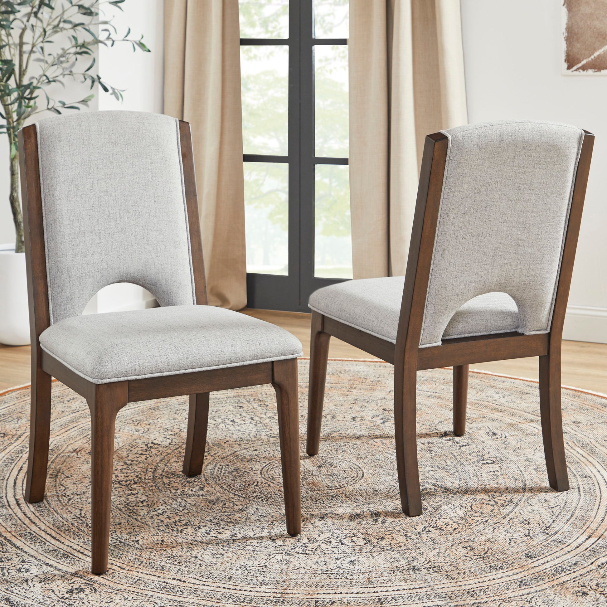 Athens - Upholstered Dining Chair (Set of 2) - Light Gray / Chocolate Brown