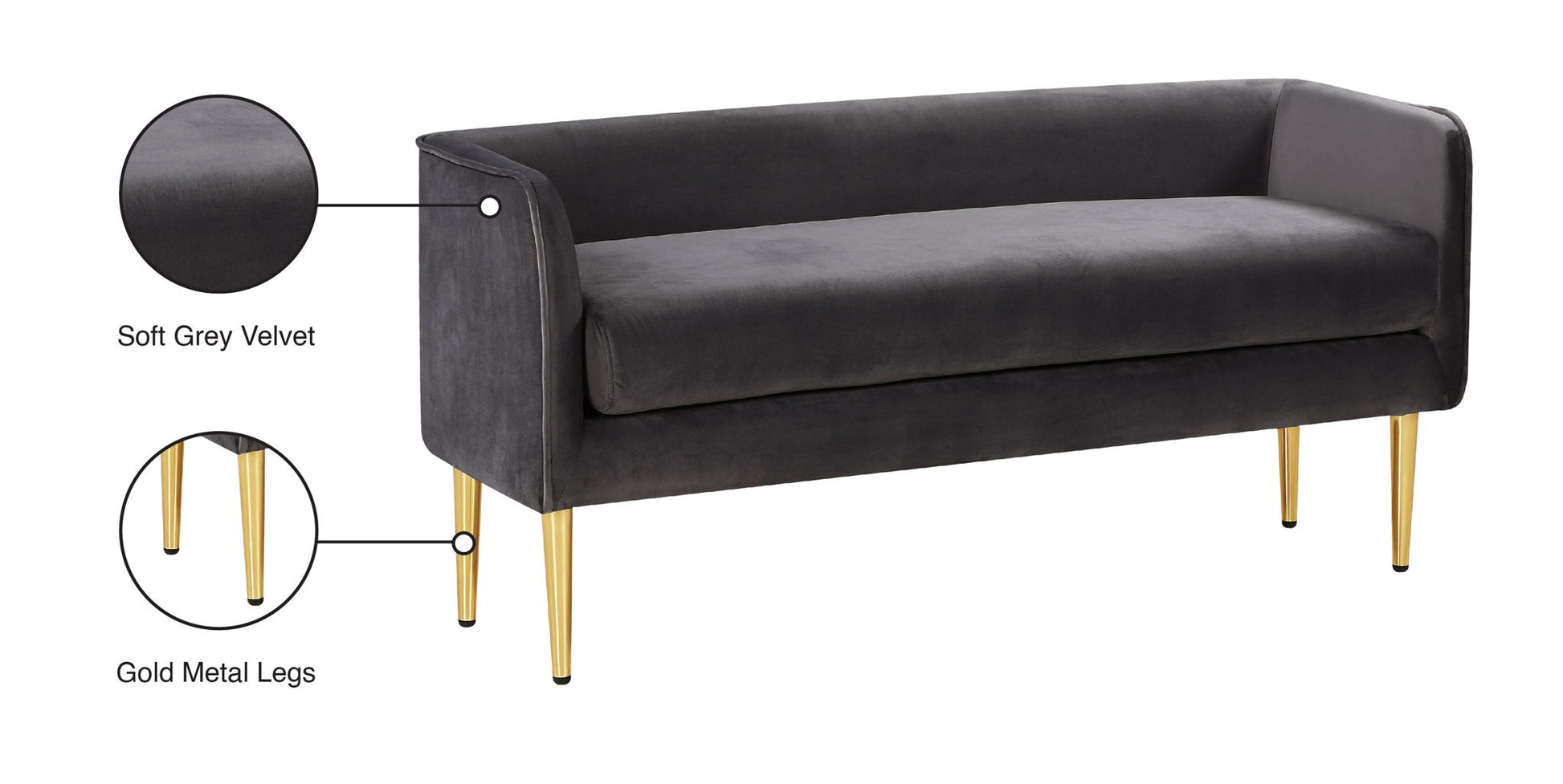 Sit or recline in exquisite comfort on this Audrey bench from Meridian Furniture. The velvet is smooth and soothing to touch, perfect for relaxing after a long day of activities. The contemporary design suits modern households while the 20-pound weight makes it easy to move around as needed. Sit the bench in the living room for extra seating or by the front door for putting on shoes.
