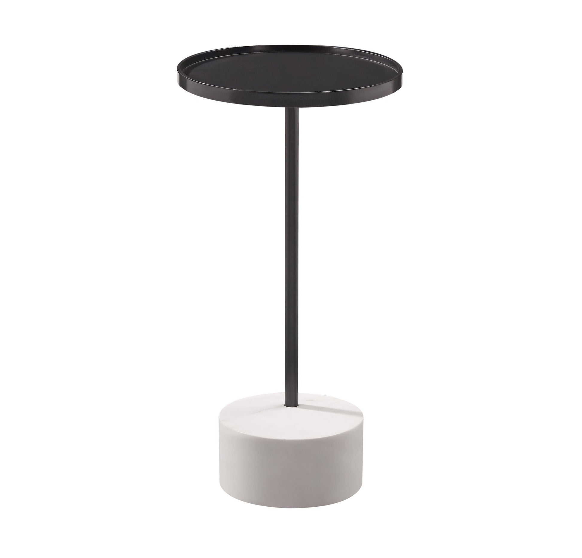This metro modern styled chairside table is the perfect accent for the home. Features a solid marble base with a cantilevered bronze top.