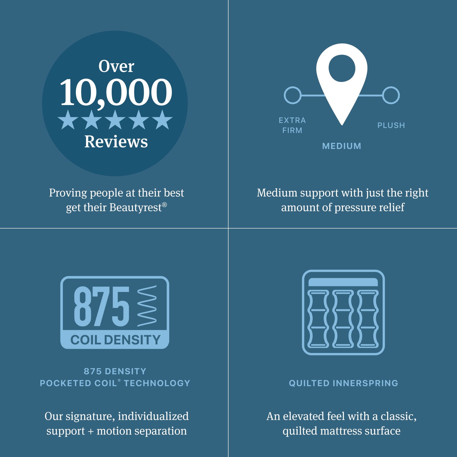 There's sleep, and then there's Beautyrest®. With the new Beautyrest® mattress collection, 875-density Pocketed Coil® Technology provides our signature individualized support + motion separation, while Beautyrest® ActiveResponse™ Memory Foam provides contouring comfort desgined to help alleviate aches and pains. With 100 years of innovation behind us and many, many more ahead, our latest collection shows exactly how people at their best, get their Beautyrest®.