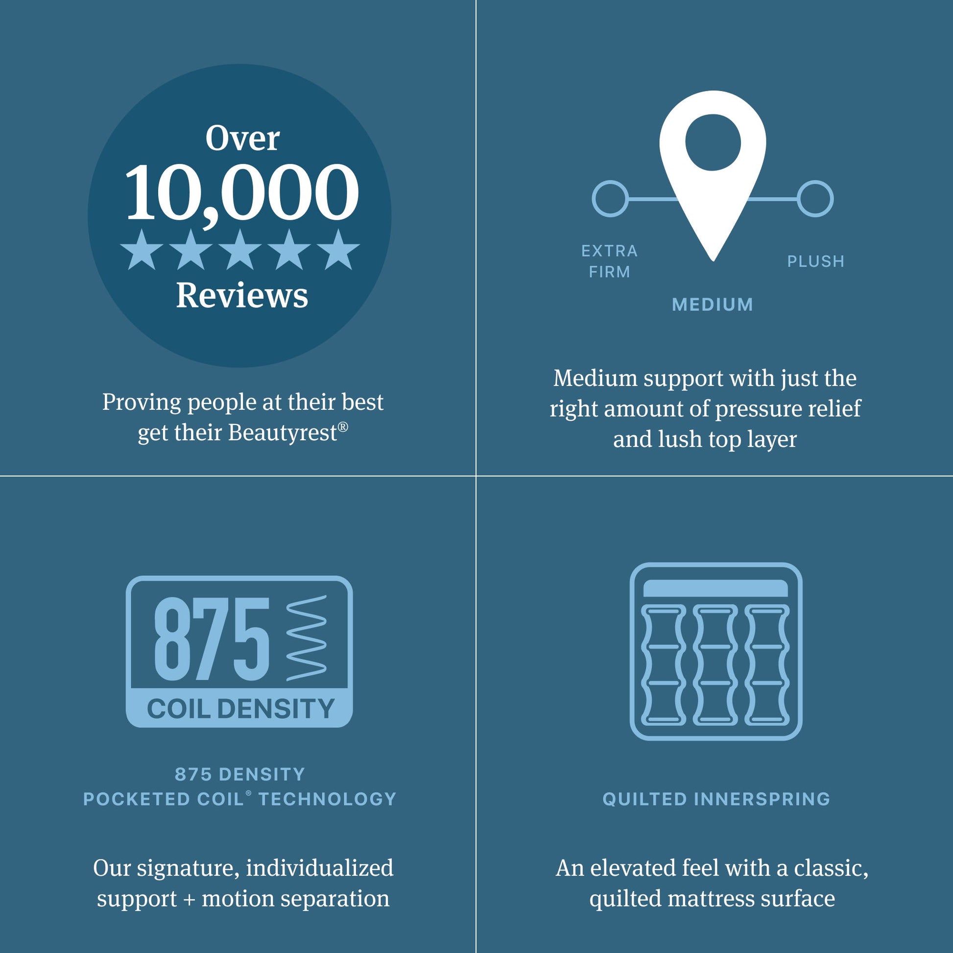 There's sleep, and then there's Beautyrest®. With the new Beautyrest® mattress collection, 875-density Pocketed Coil® Technology provides our signature individualized support + motion separation, while Beautyrest® ActiveResponse™ Memory Foam provides contouring comfort desgined to help alleviate aches and pains. With 100 years of innovation behind us and many, many more ahead, our latest collection shows exactly how people at their best, get their Beautyrest®.