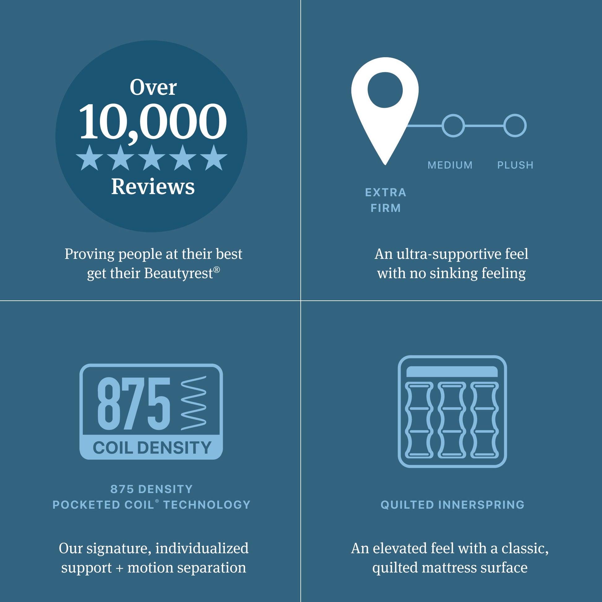 There's sleep, and then there's Beautyrest®. With the new Beautyrest® mattress collection, 875-density Pocketed Coil® Technology provides our signature individualized support + motion separation, while the Beautyrest® ActiveResponse™ Memory Foam provides contouring comfort designed to help alleviate aches and pains. Sleep comfortably with a cooling sleep surface provided by InfiniCool® Technology. With 100 years of innovation behind us and many, many more ahead, our latest collection shows exactly how people at their best, get their Beautyrest®.