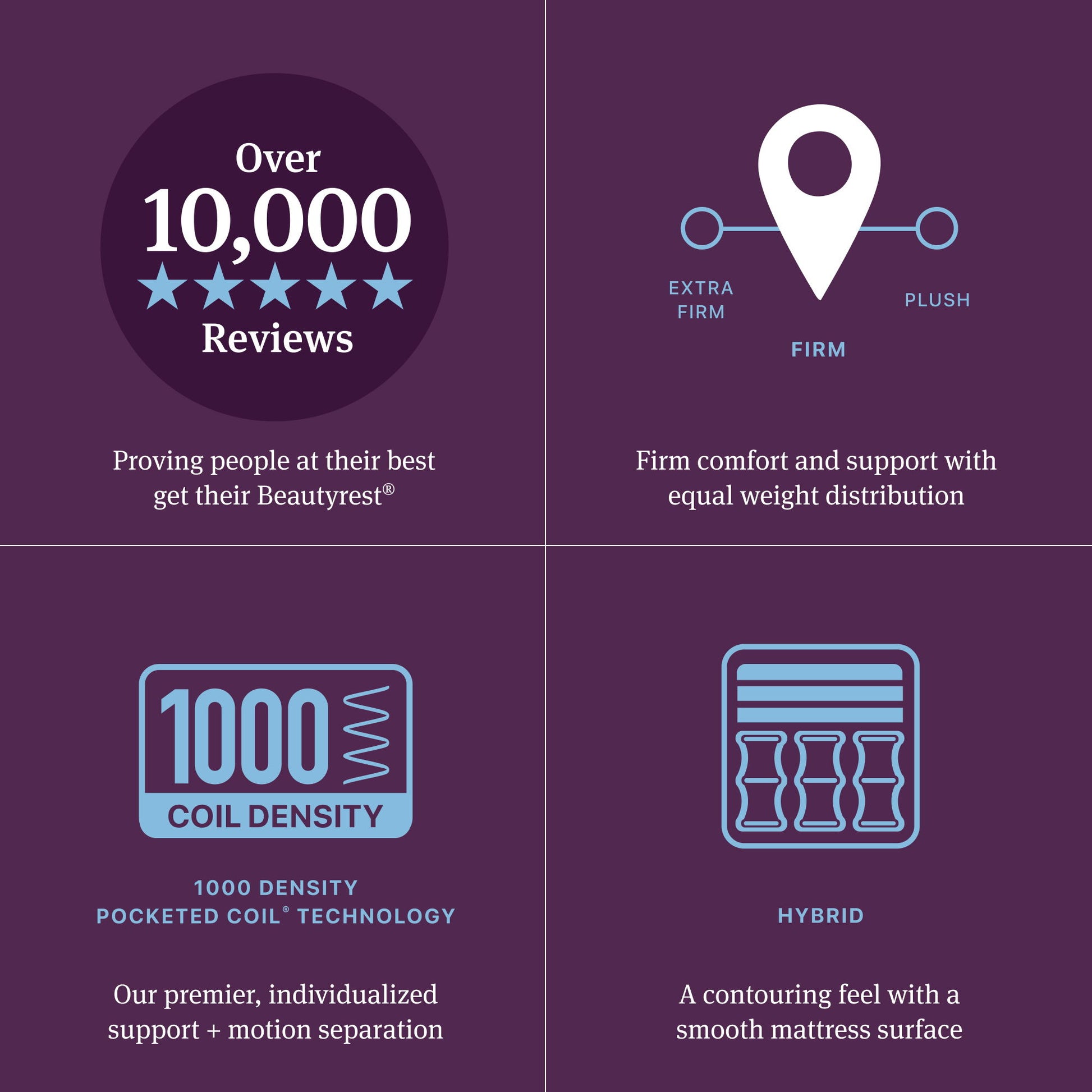 Step up to a world class sleep experience with Beautyrest® World Class™. Our 1000-density Pocketed Coil® Technology and higher density foams provide premier individualized support + motion separation. Our brand new World Class Relief™ HD Foam, featured in all Level Four Mattresses, offers remarkable pressure relief that responds to your body. Our Beauytrest® World Class™ Hybrid mattresses feature InfiniCool® Technology and Beautyrest ActiveResponse™ MAX HD Memory Foam for a cooling sleep surface and added pressure relief. With 100 years of innovation behind us and many, many more ahead, our latest collection shows exactly how people at their best, get their Beautyrest®.