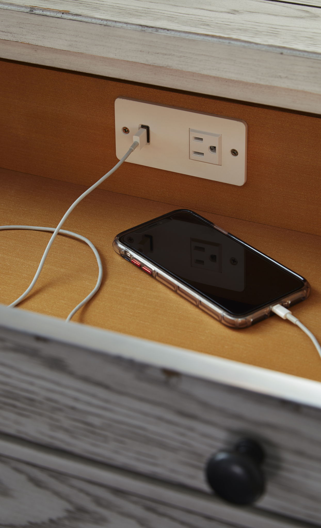 - Crafted of Select Hardwoods and Flat Cut White Oak Veneers