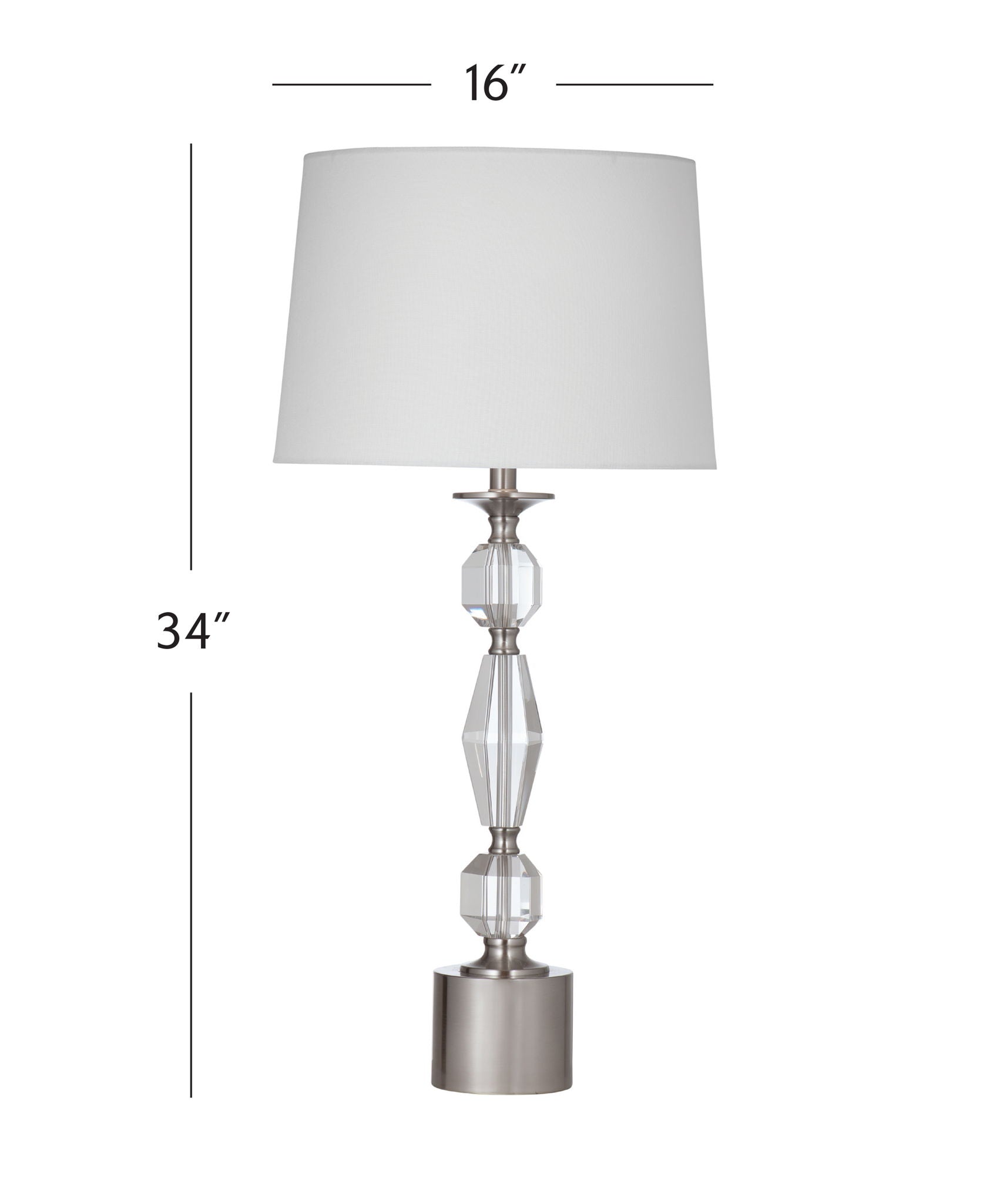 The Bella Table Lamp features a clear crystal and silver base, bringing a touch of traditional elegance to any space. The clean lines and timeless design of the base are beautifully complemented by a white tapered drum shade, which softens the light and creates a warm, inviting ambiance. This lamp seamlessly fits into a variety of interior styles, adding both sophistication and function to your home. The Bella Table Lamp is the perfect choice for enhancing your decor with refined, classic beauty.
