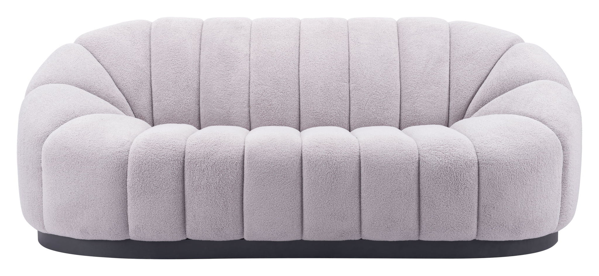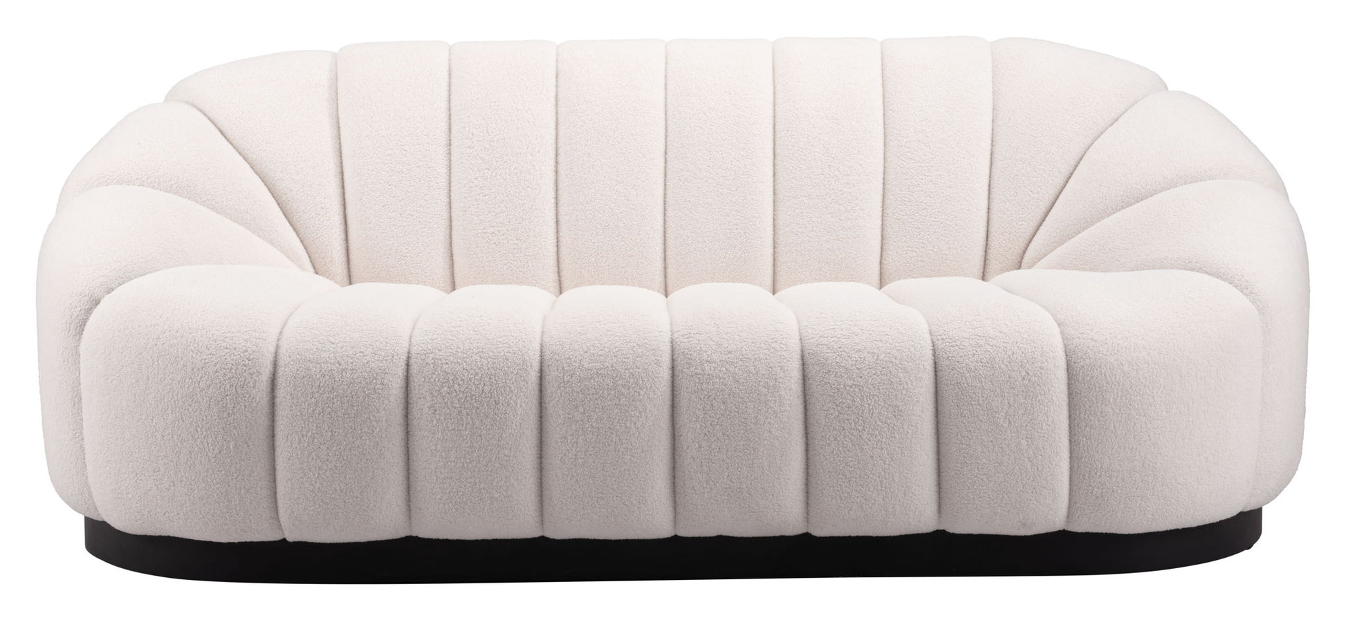 The Bhutan Sofa has a polyester boucle style fabric.This sofa works great in any space, hospitality or residential. The shape and design are glam, modern, deco and boho all at the same time.