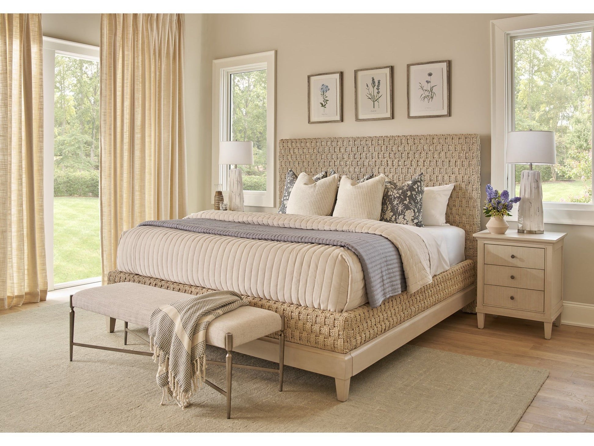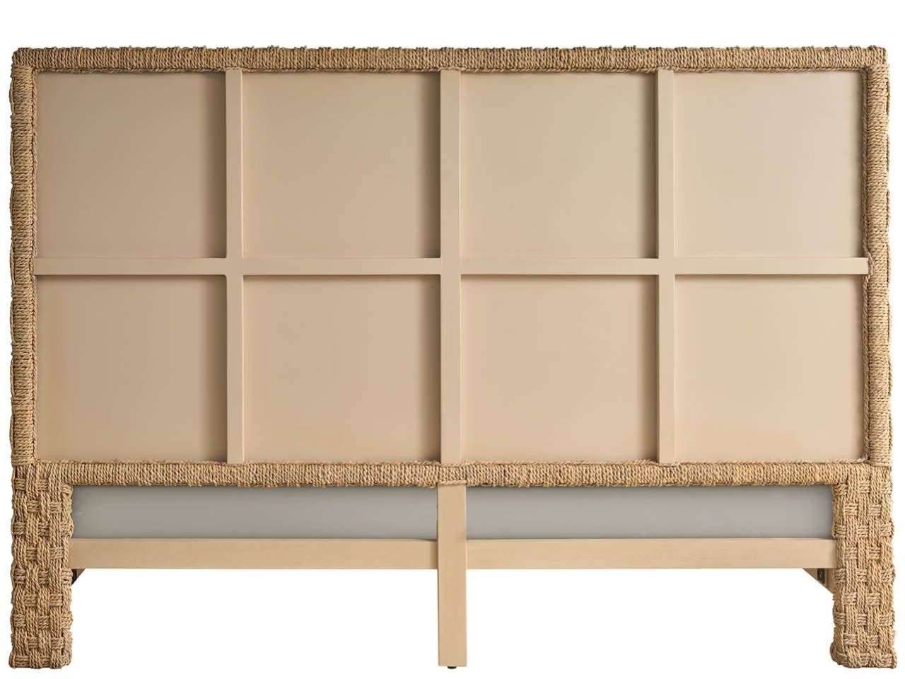 The Woven Bed brings serene coastal elegance, pairing the light finish with the beautiful texture of expertly hand-wrapped twisted abaca. The balanced contrast of materials results in a striking bedroom focal point that feels both contemporary and classically refined.