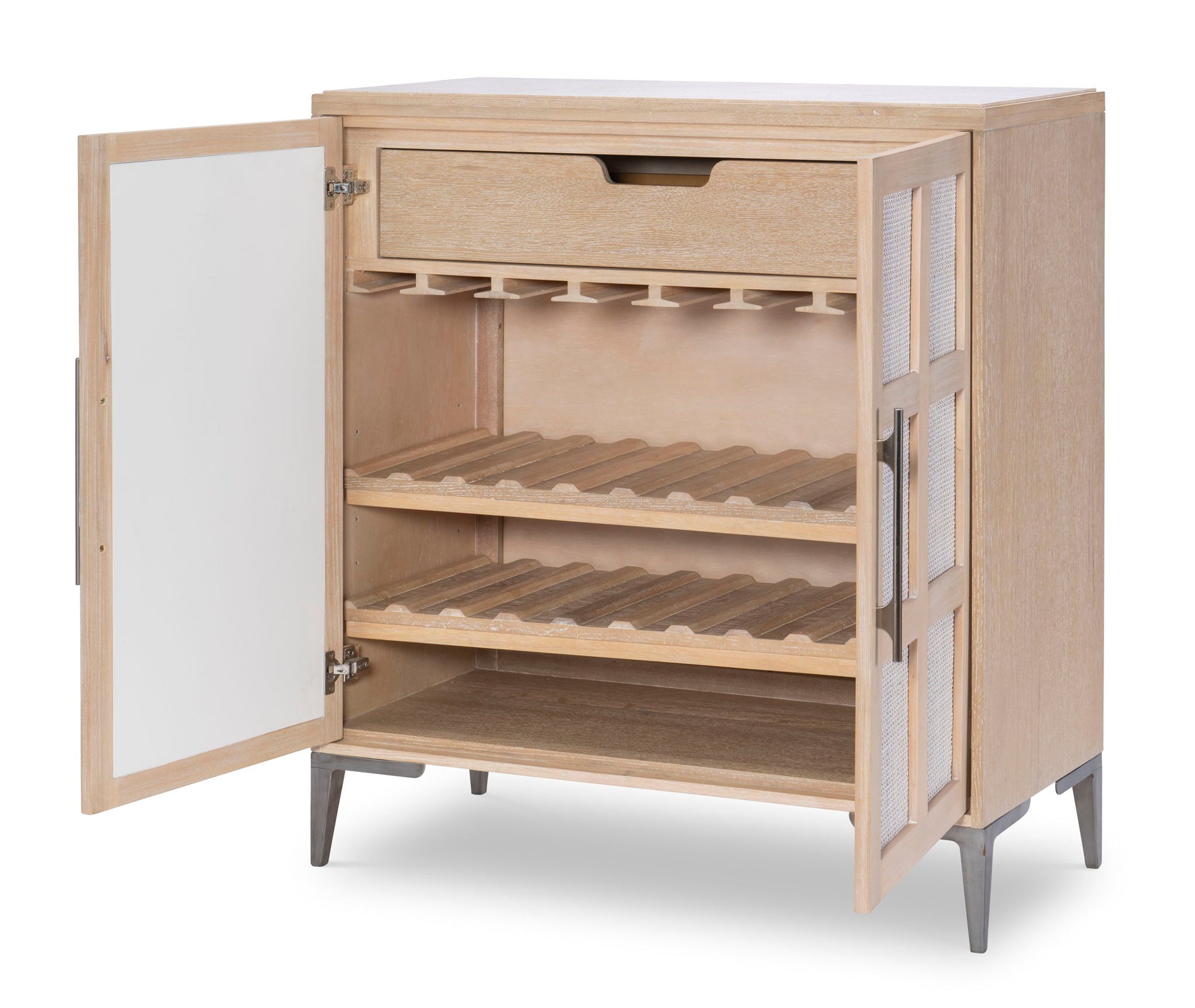 Capture a modern resort feeling with the Biscayne Collection by Legacy Classic - Modern. A light and airy blonde Malabar finish is paired with faux woven raffia,, alabaster doors,, and boucle fabrics for a serene and stylish setting.