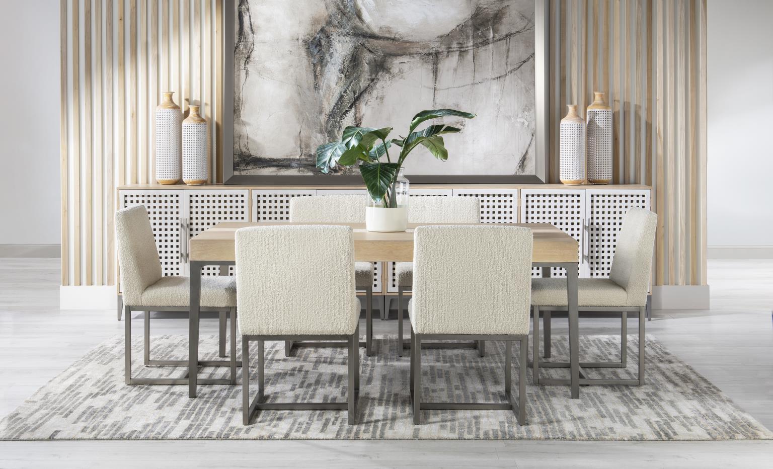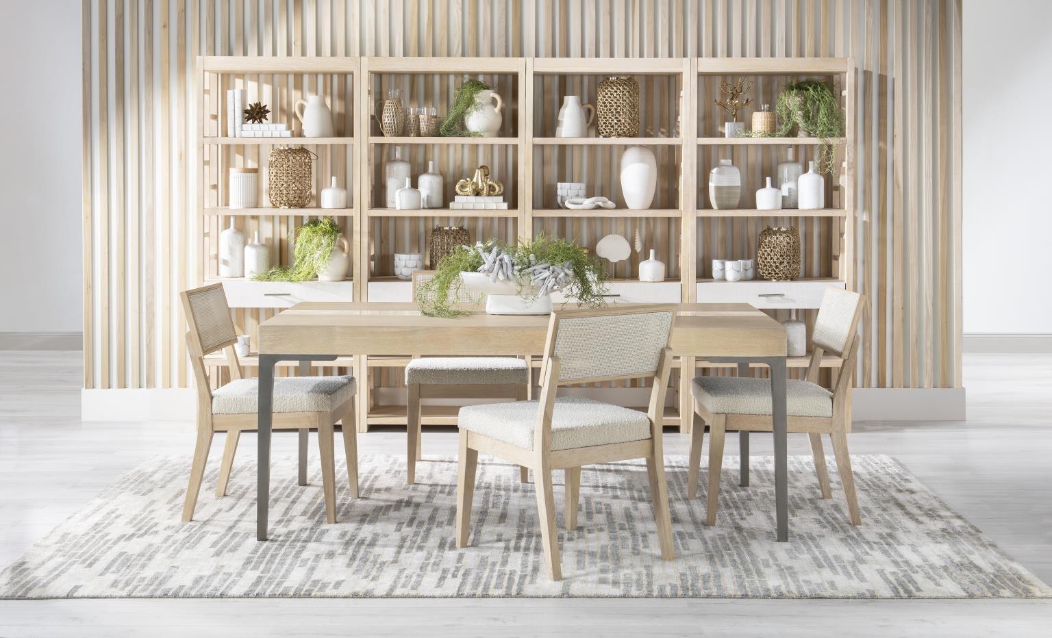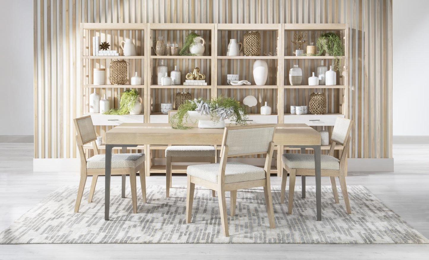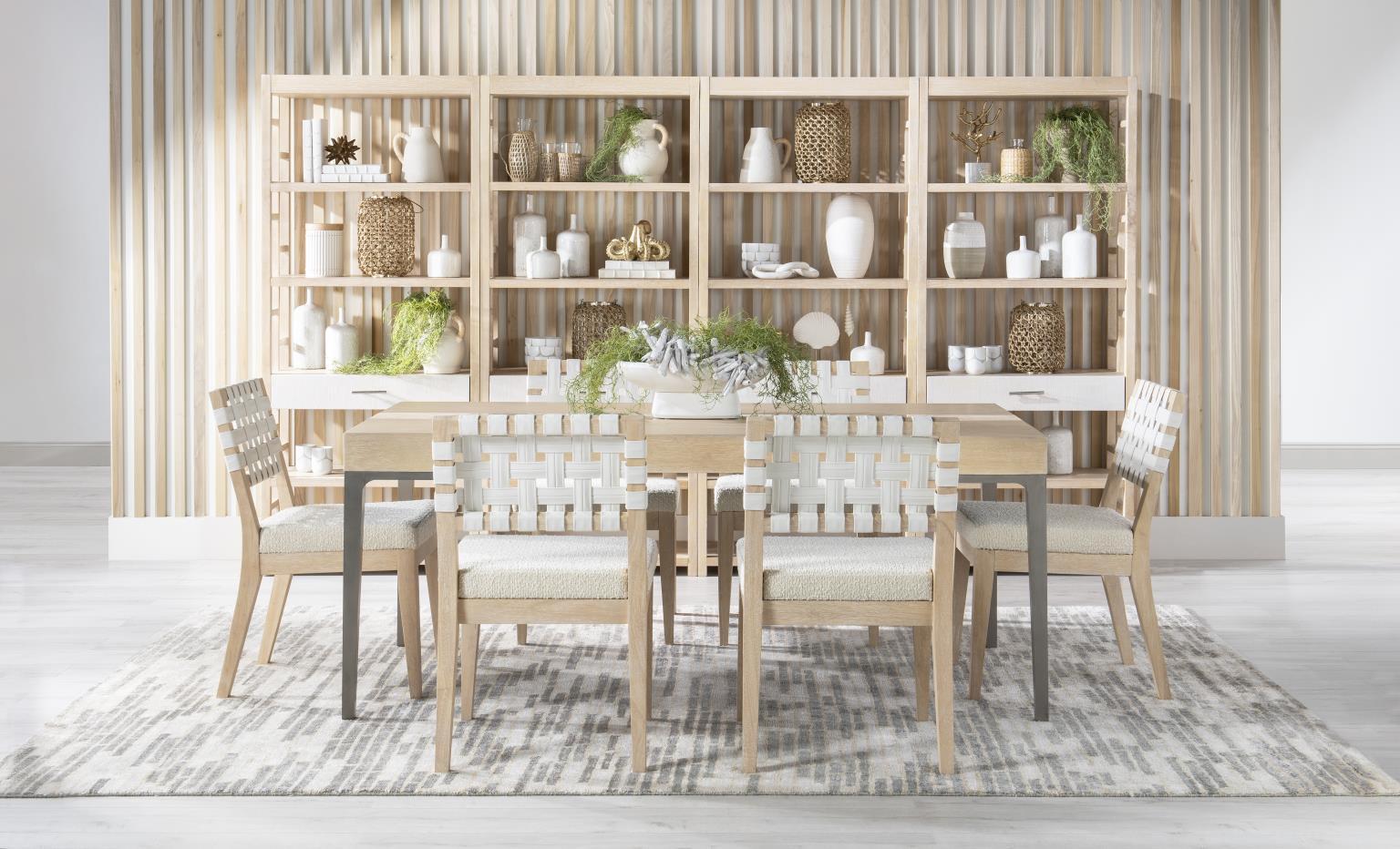 Capture a modern resort feeling with the Biscayne Collection by Legacy Classic - Modern. A light and airy blonde Malabar finish is paired with faux woven raffia,, alabaster doors,, and boucle fabrics for a serene and stylish setting.
