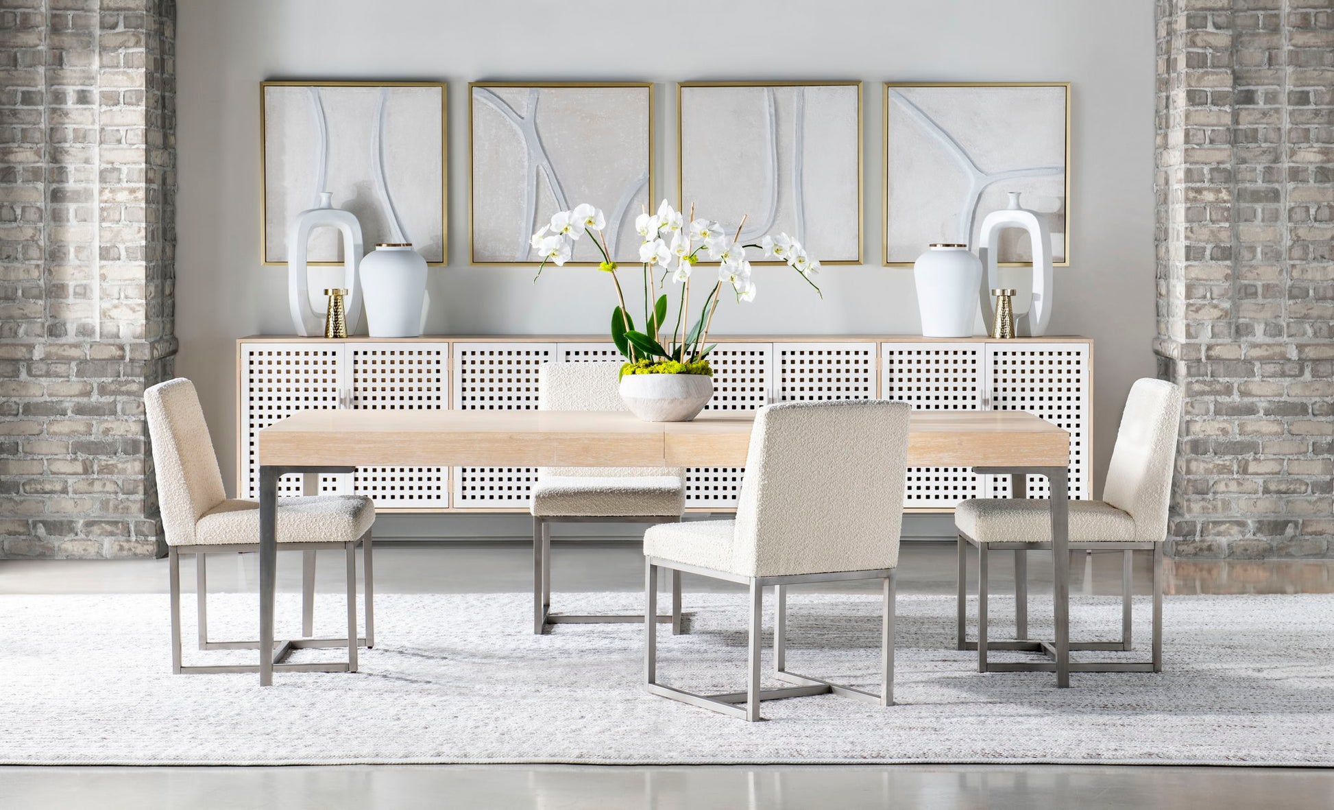 Capture a modern resort feeling with the Biscayne Collection by Legacy Classic - Modern. A light and airy blonde Malabar finish is paired with faux woven raffia,, alabaster doors,, and boucle fabrics for a serene and stylish setting.