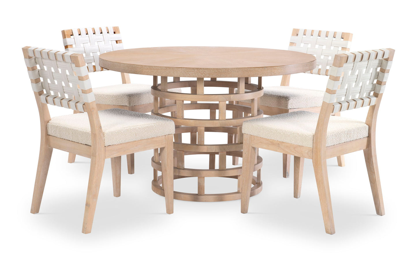 Capture a modern resort feeling with the Biscayne Collection by Legacy Classic - Modern. A light and airy blonde Malabar finish is paired with faux woven raffia,, alabaster doors,, and boucle fabrics for a serene and stylish setting.