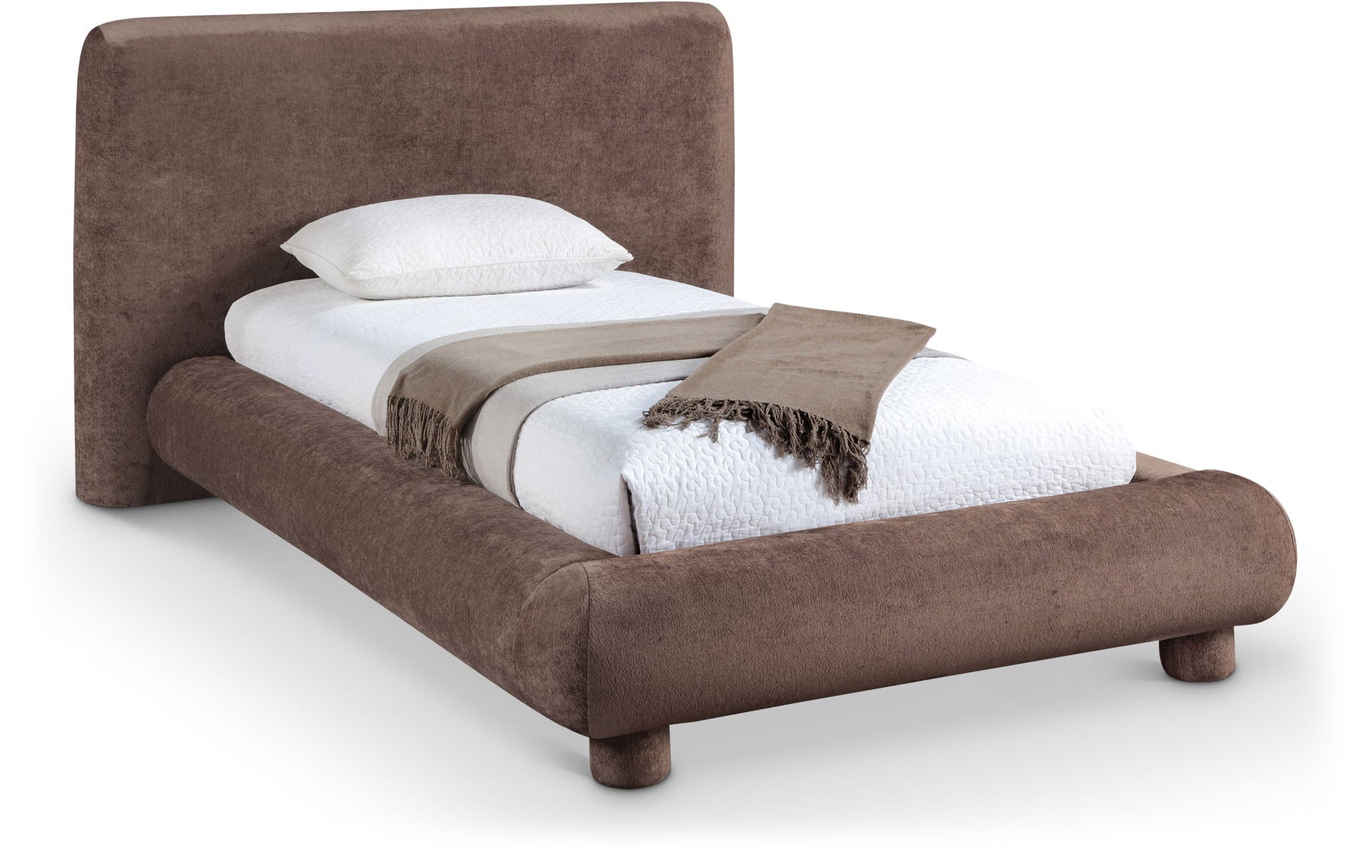 Softly rounded edges and an inviting silhouette define the Blair chenille upholstered bed, wrapped in a soft 570 GSM fabric. Its understated texture adds dimension while offering a calming, neutral base for any bedroom aesthetic.