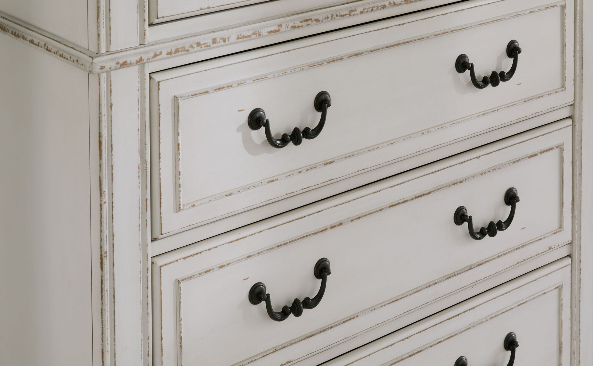 Traditional design. Casual appeal. You can have it all with this dresser. A relaxed two-tone aesthetic merges with ornate profiled drawer fronts and pilasters to give the distinctive piece an allure all its own. Expansive drawers with quality dovetail construction and dark bronze-tone hardware reflect attention to detail from the inside out.