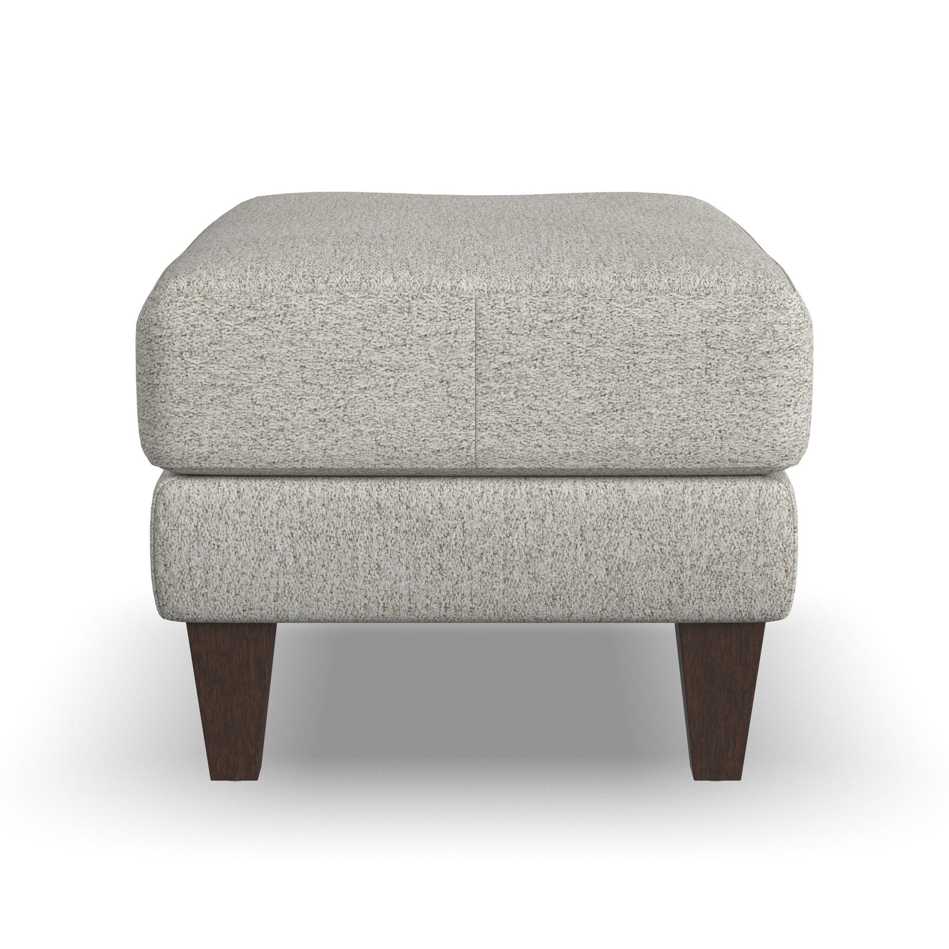 Structured Style. Add a touch of cosmopolitan allure to your living space with the Bond ottoman. Its sophisticated mid-century style delivers clean lines with a structured design. A durable yet luxuriously soft top cushion offers ultimate comfort for tired legs. Square tapered legs, available in three finishes, and the ability to upholster in your choice of fabrics ensures you achieve the perfect look.