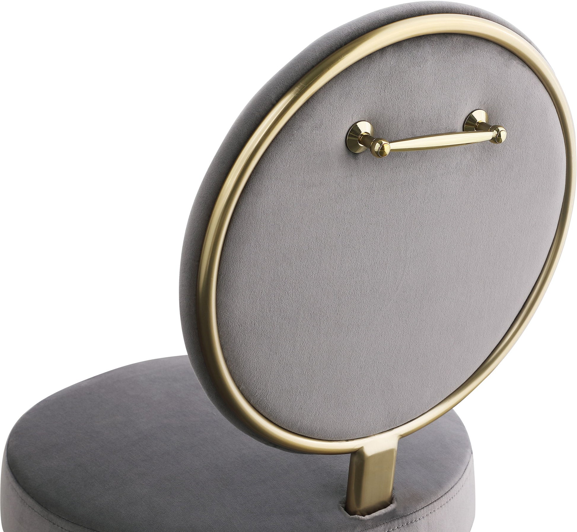 Give your dining area a chic touch with this Brandy velvet dining chair from Meridian Furniture. Featuring a rounded seat and rounded backrest, this chair brings an element of style to your dining table. Soft velvet upholstery makes this chair a luxury to sit on, providing softness and comfort while you eat breakfast, lunch, or dinner. Its brushed brass finish pops out from the the velvet upholstery, giving it a contemporary style that complements your home.