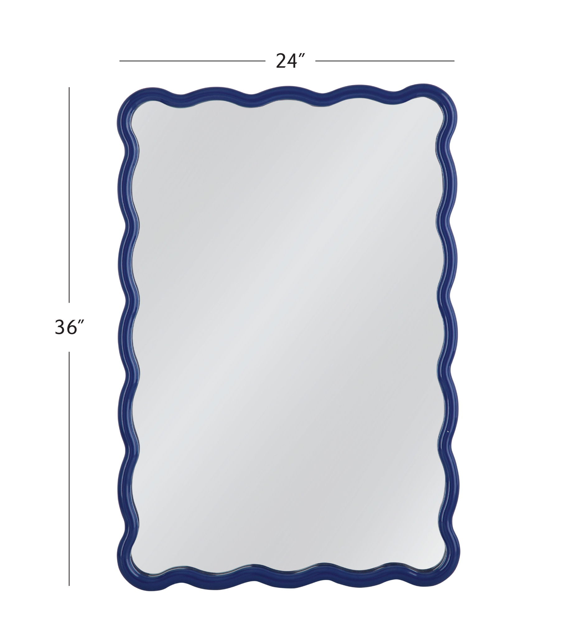 The Camellia Wall Mirror is a perfect accent to liven up your space, boasting a navy blue lacquered frame for a vibrant touch. Its wavy edges offer a playful twist on the traditional rectangular shape, adding character to any room. Crafted with a navy blue lacquered finish, this mirror effortlessly enhances any space.