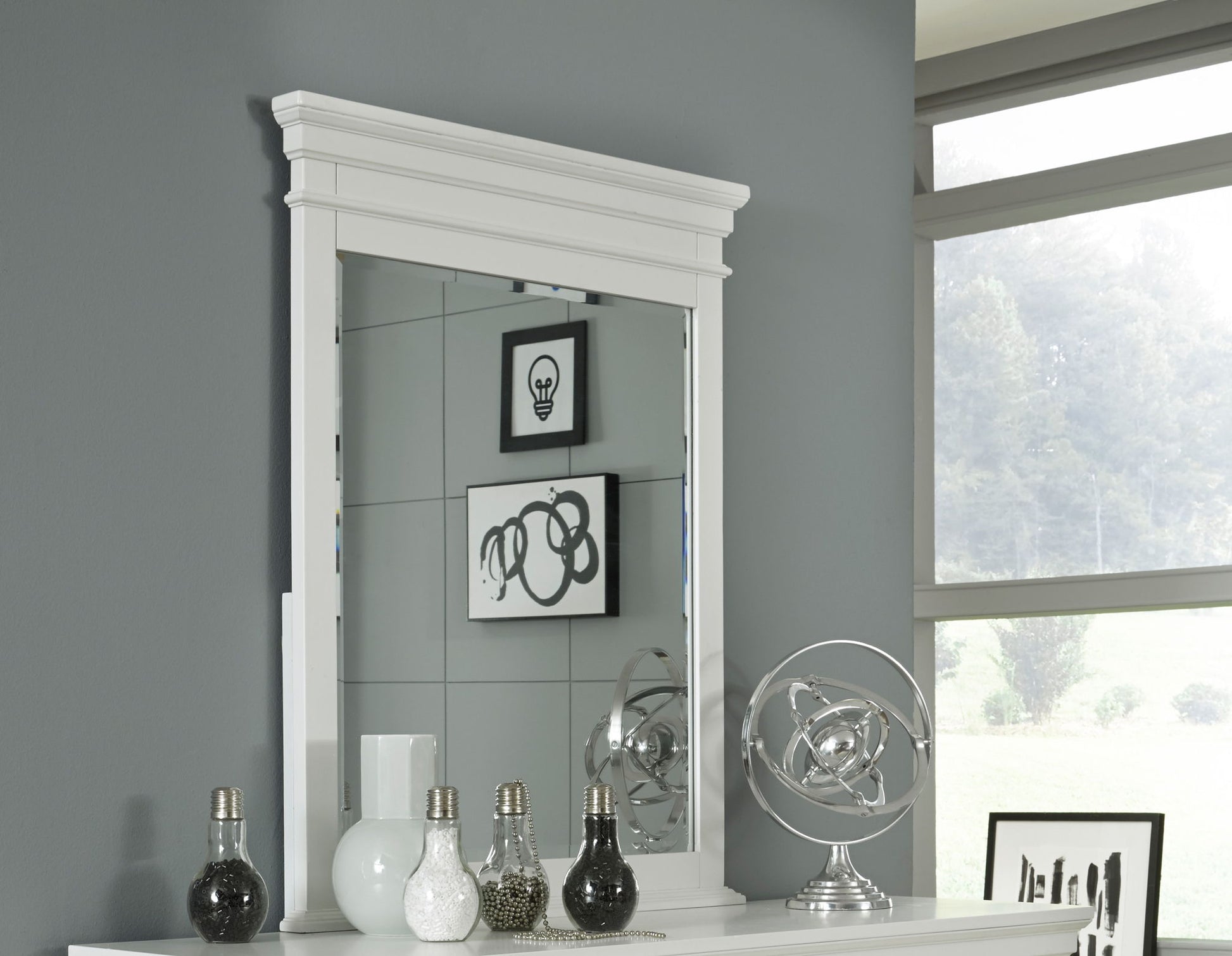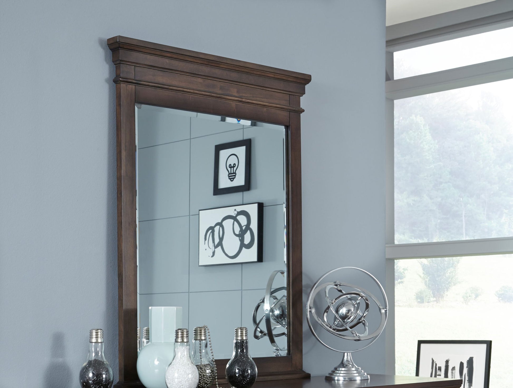With a finish, the Canterbury bedroom collection is sure to shine in your home. Clean lines and a flat top crown give the beveled Vertical Mirror a sophisticated depth that will compliment any décor style. Pair with the 9814-1100 Dresser for a crisp, polished look. Crafted from poplar solids and rustic birch veneers, this mirror is a timeless accent that will endure in its simplicity. CA Carb P2 Compliant.