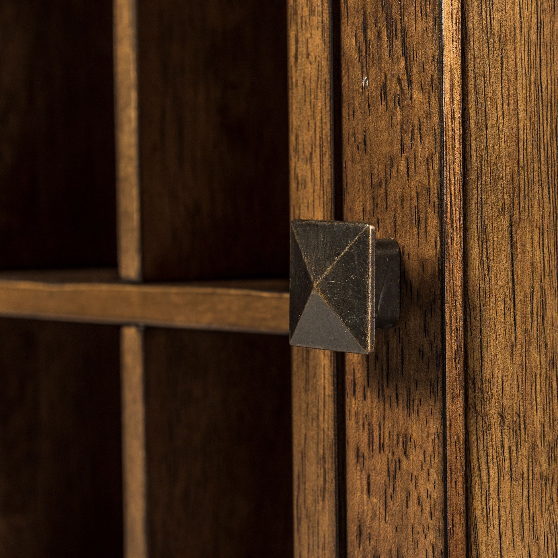 Enhance your space with the Carolina Crossing server. Crafted of rubberwood solids, this piece features a honey finish, bottom case dust proofing, two fully stained interior drawers, removeable nine bottle wine storage, two wood framed doors with one adjustable shelf behind each, and is accented by antique brass square knob hardware. This server is available in multiple finishes and the heavy distressing translates well into any decor.