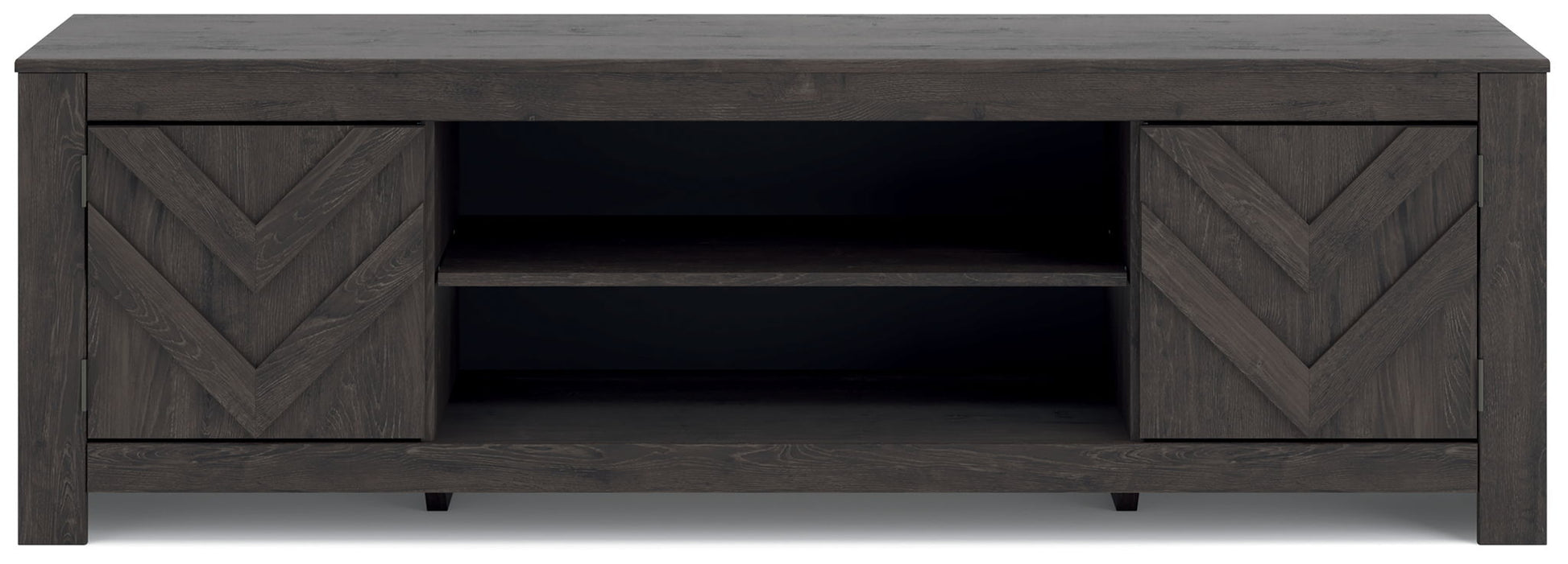 This TV stand embraces a classically charming aesthetic and repurposes it for modern living. Its finish to your love of vintage character, while the chic chevron pattern is effortlessly on trend. And with hidden storage behind the doors, your media accessories stay tucked away in style.
