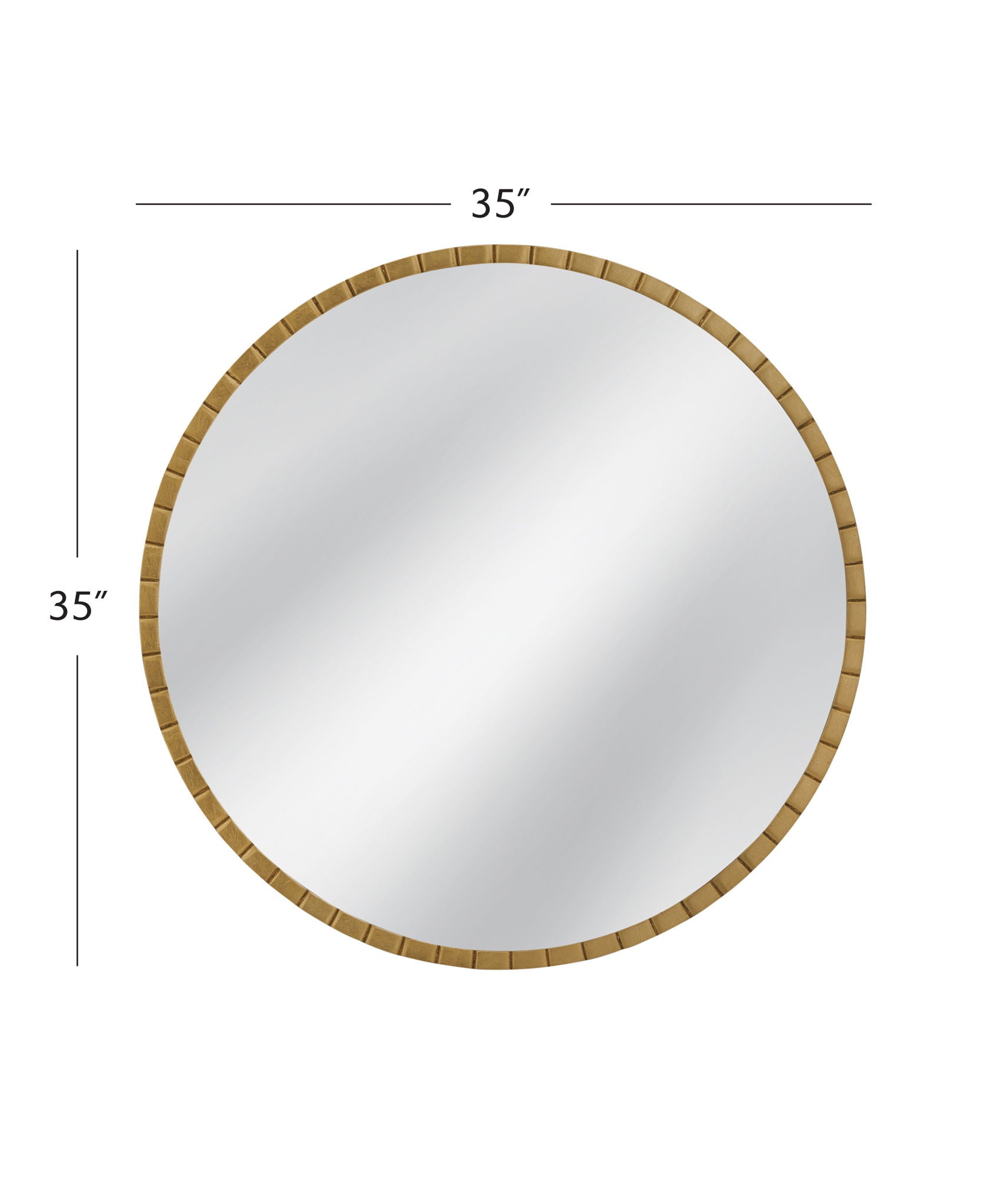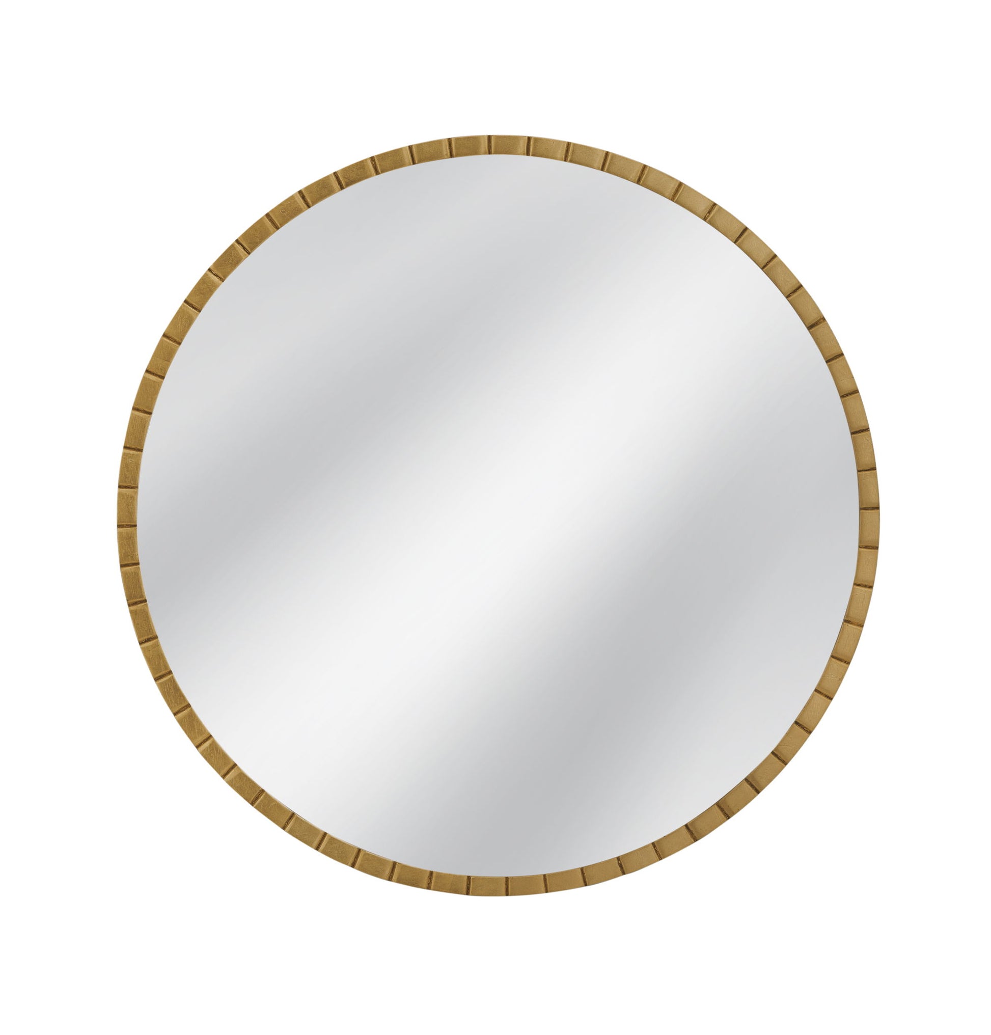 The Celeste Wall Mirror showcases a luxurious gold leaf finish, providing a rich, glam aesthetic that is both luxurious and modern. Its large, round beveled shape creates an expansive reflective surface, making it a statement piece for any room. The gold leaf frame with its subtle texture adds an opulent touch that embodies a sophisticated charm, perfectly suited for spaces designed with a blend of glamour and contemporary style.