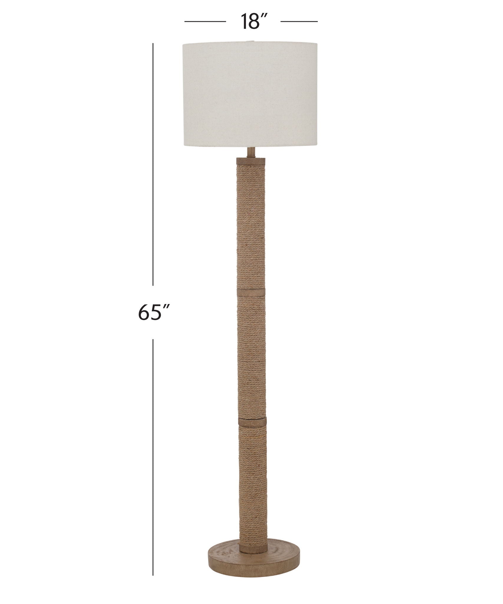 The Chester Floor Lamp offers a delightful fusion of boho design and coastal aesthetics, bringing a relaxed vibe to any room. Featuring charming rope detailing, it adds a touch of rustic charm to its modern silhouette. The drum shade casts a moody yet inviting glow, creating a cozy atmosphere for relaxation or entertaining. With its versatile style, this lamp effortlessly complements various decor themes, from coastal cottages to urban lofts. Illuminate your space with the warm ambiance and understated elegance of the Chester floor lamp.