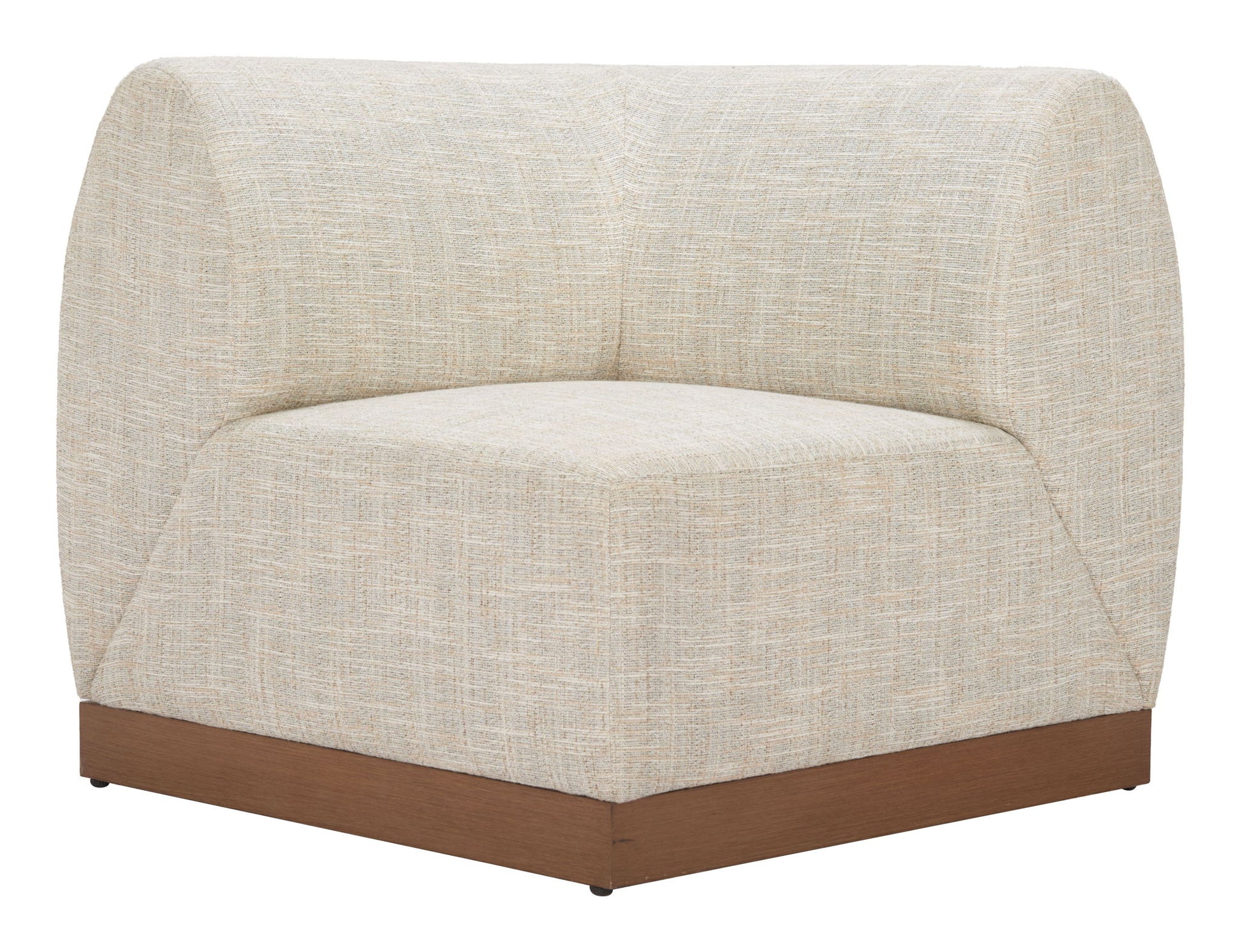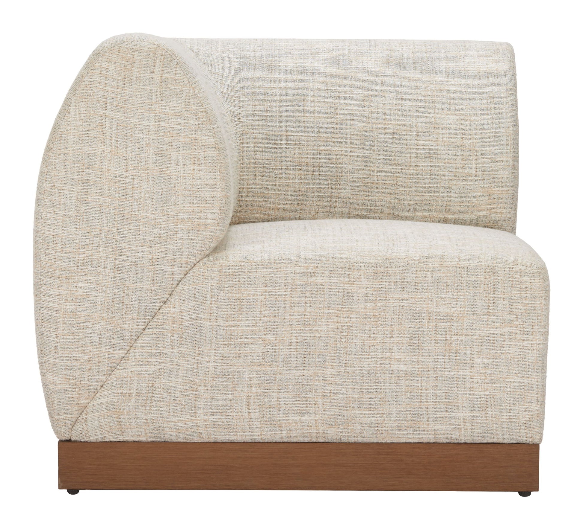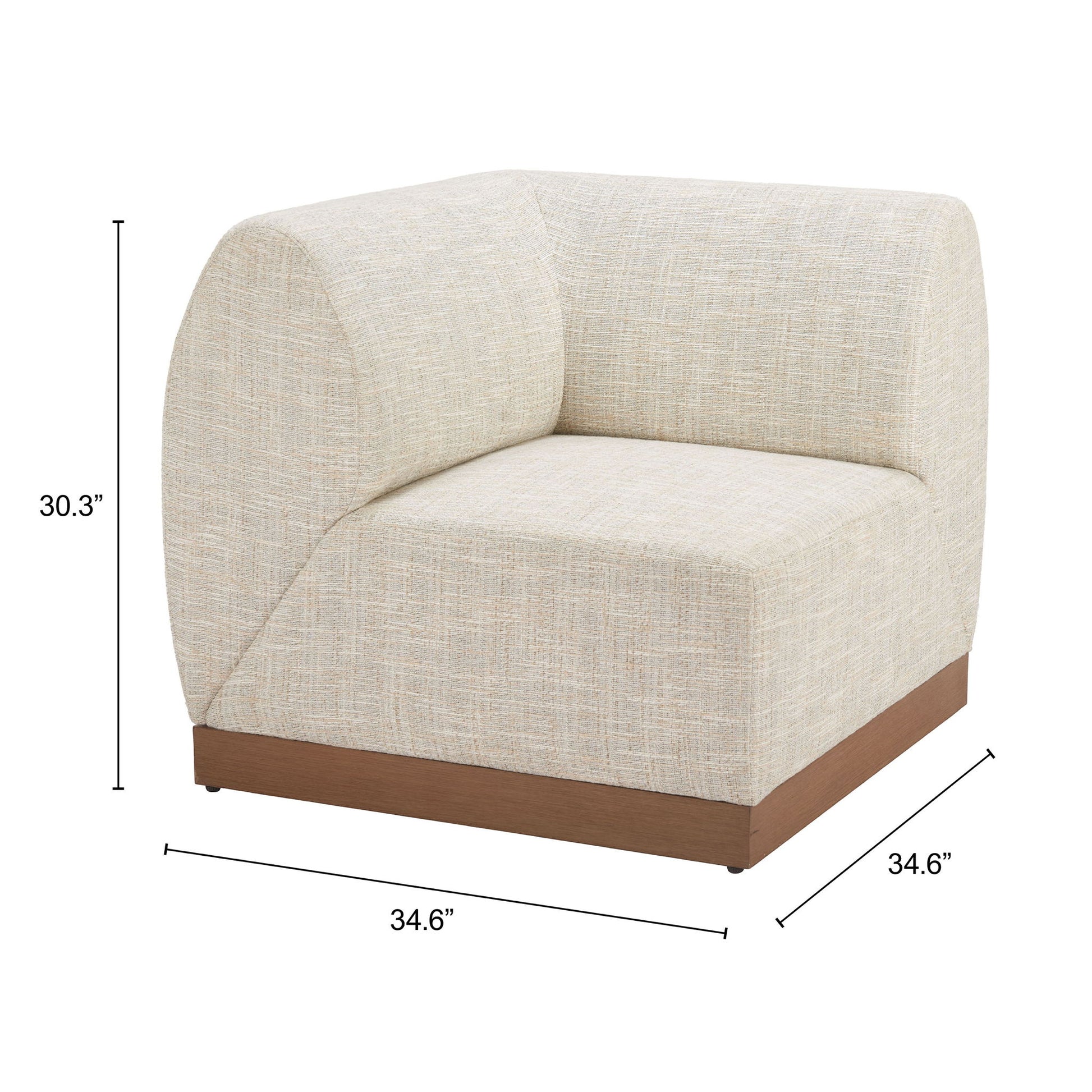 A statement of modern elegance designed for hospitality settings, the Christy Corner Chair Beige features beige hues and a sleek structure crafted from outdoor fabric (100% polyester) and powder coated aluminum, ensuring both style and longevity.