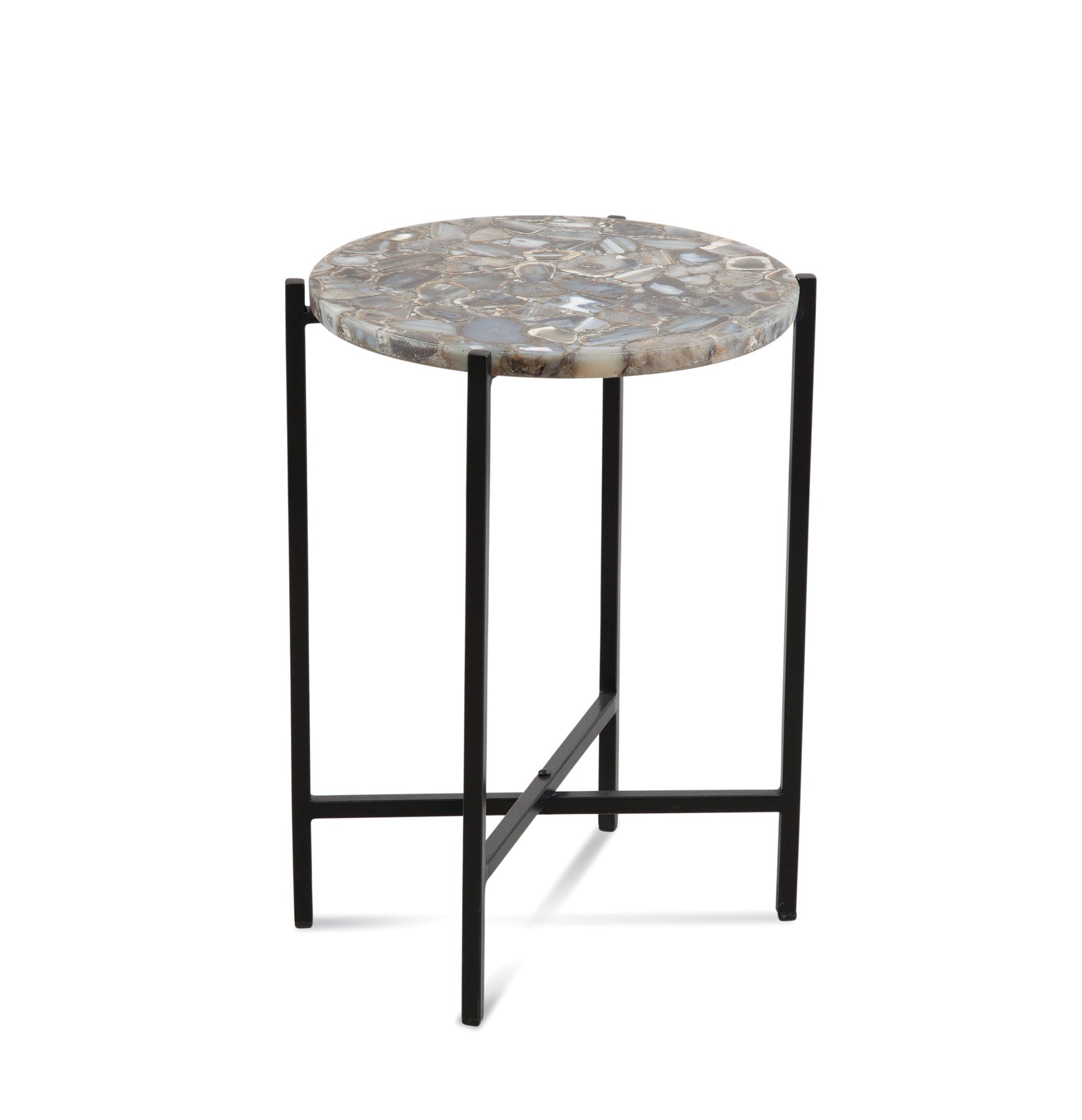The Cicco Accent table features an agate top and black base. Finish: agate, black. Material: agate, iron.