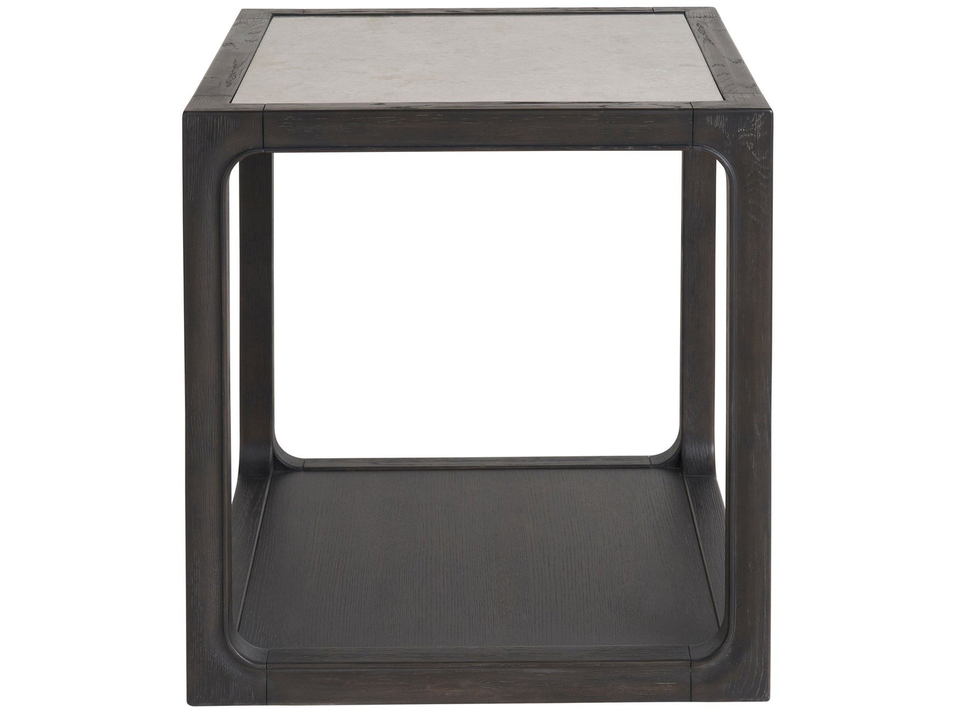 The Halen End Table exudes chic elegance with its slender, square form finished in the sophisticated Ravenwood hue, enhanced by an inset stone top that lends a polished and contemporary air to its sleek design.