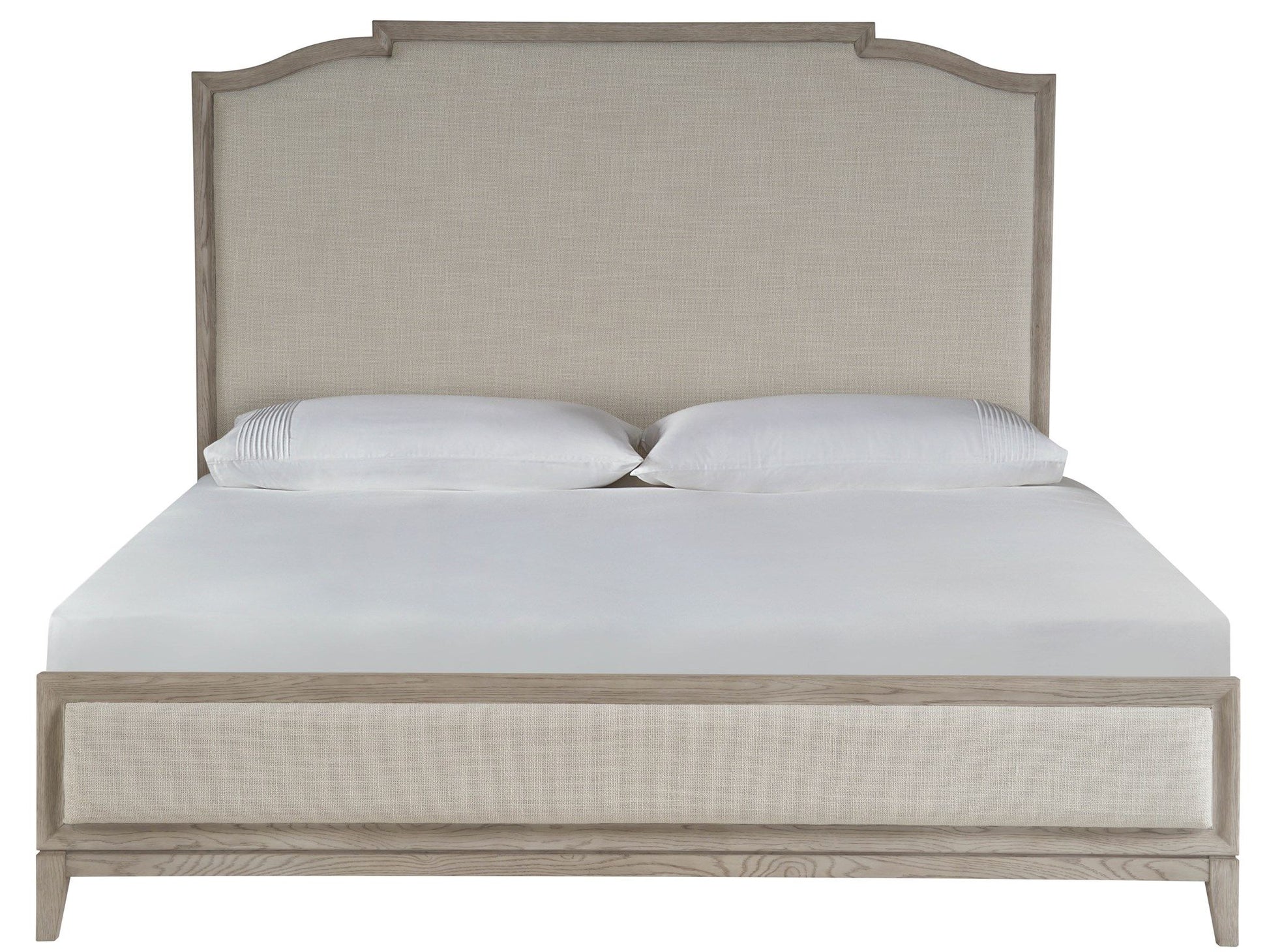 The Coalesce Panel Bed showcases a chic, slightly scalloped frame paired with plush upholstery, presenting a luxurious yet inviting centerpiece for the bedroom.