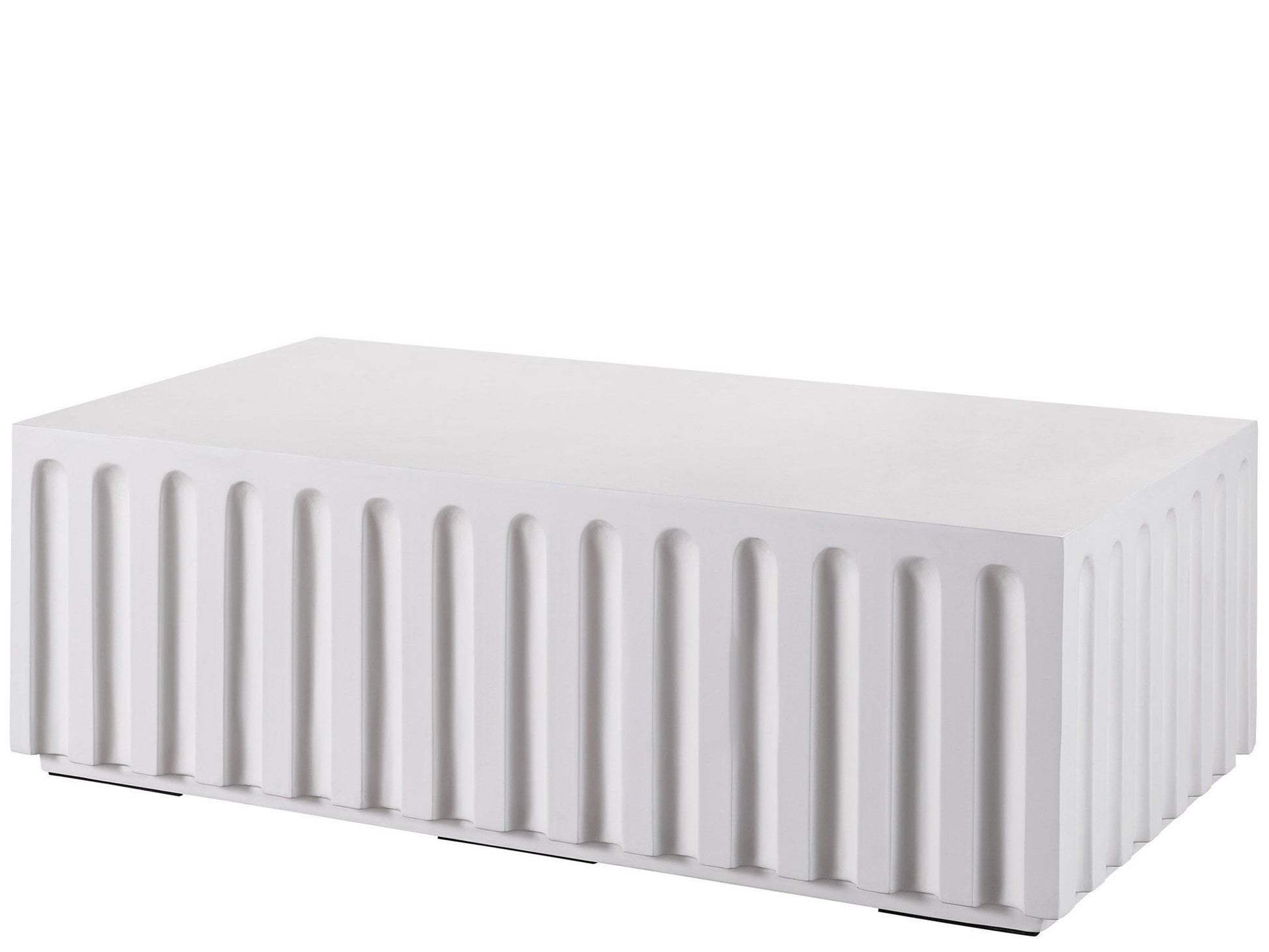 Showcasing contemporary lines and a bright white hue, the Edisto Cocktail Table adds playful panache to outdoor spaces.