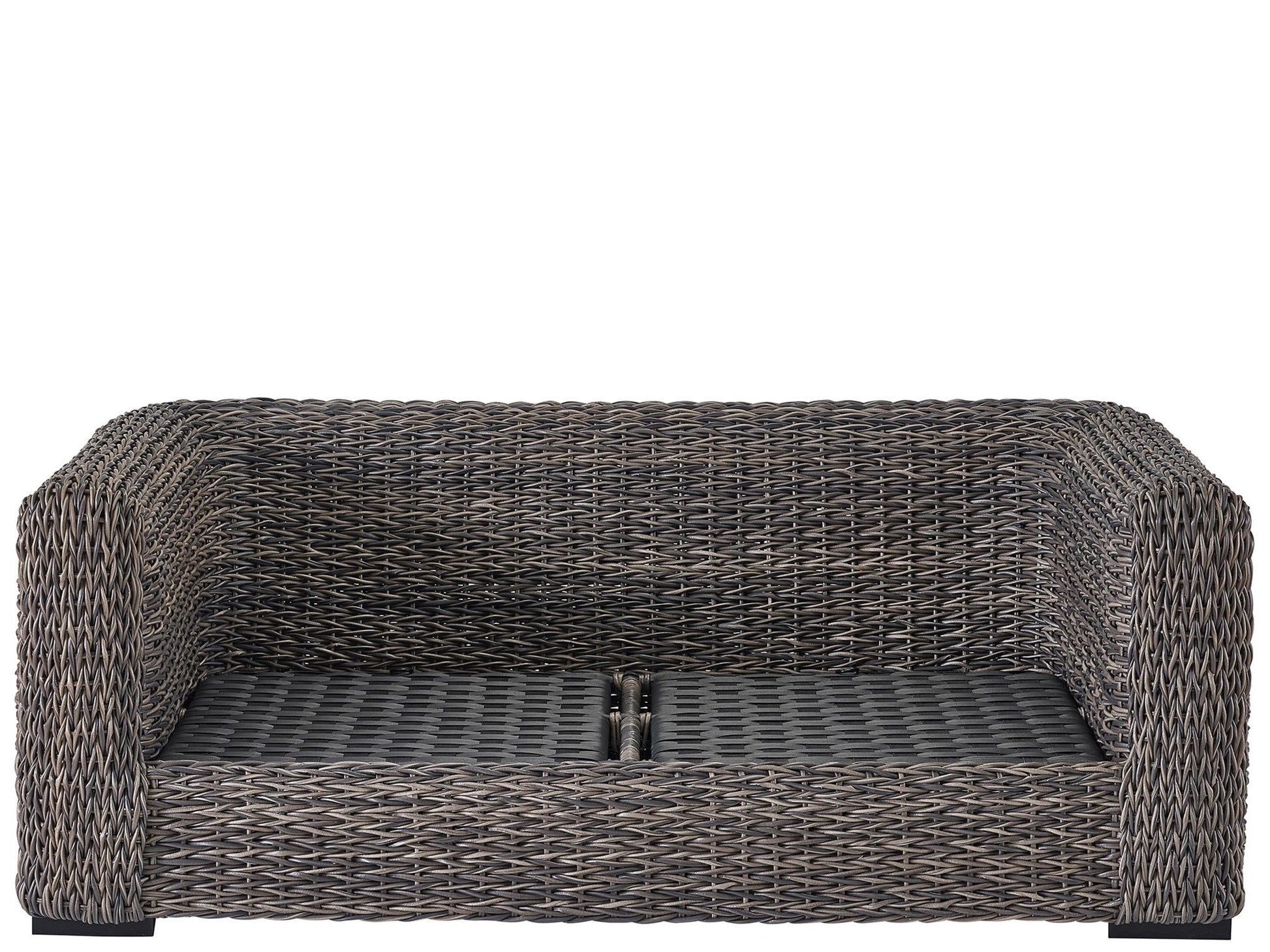 The Montauk Loveseat offers the best of coastal style paired with outdoor functionality, showcasing a cozy one-cushion seat neatly nestled within a Tawny-finished wicker frame.