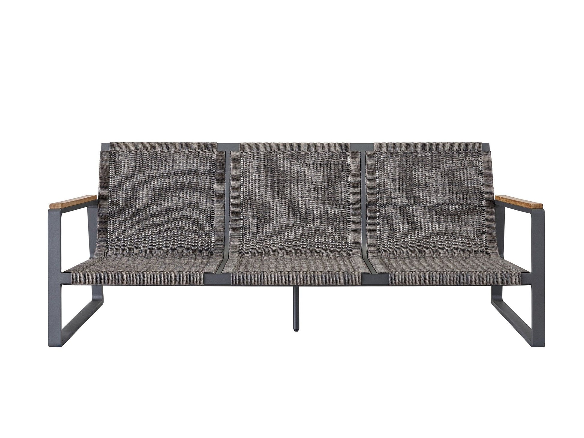 Instantly enrich outdoor spaces with the San Clemente Sofa, a 3-seat comfort piece fusing a mix of organic tones and materials, including teak, wicker, and aluminum for an elevated take on outdoor living.